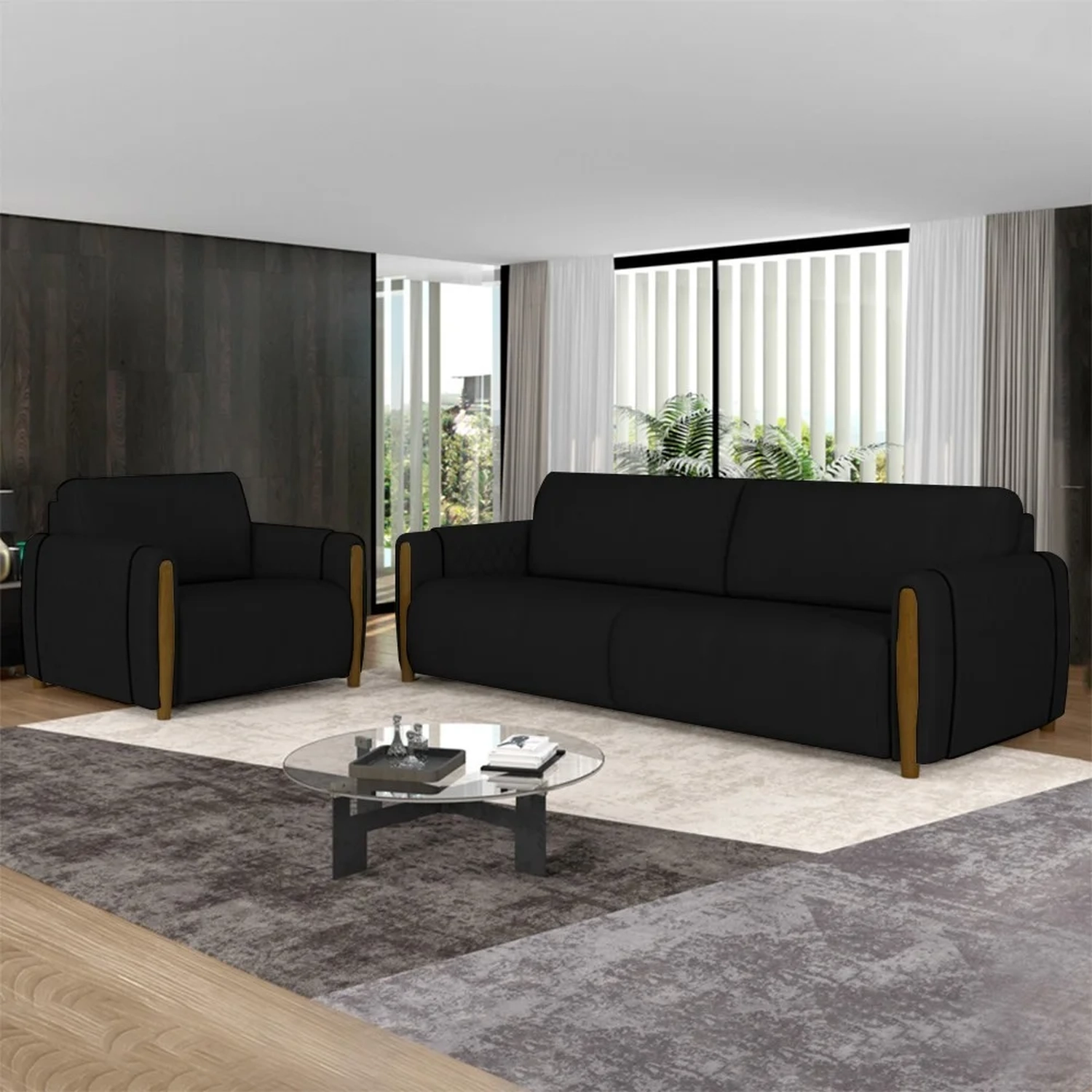 Uma sala de estar completa é indispensável para criar um ambiente acolhedor e aconchegante. Para tanto, apostar no Conjunto de Sofá 3 Lugares e Poltrona Amaranto Veludo Preto, da Mpozenato, é a escolha perfeita para quem busca por esses adjetivos.