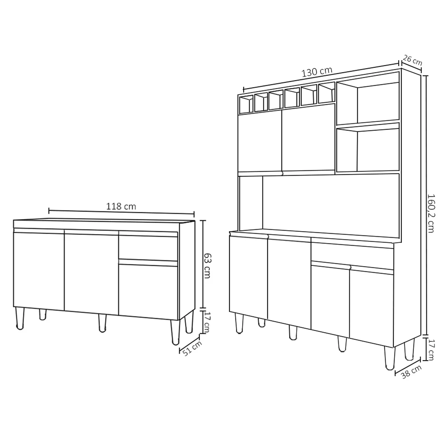 Conteúdo da Embalagem: 1 Balcão 120cm, 1 Armário.
