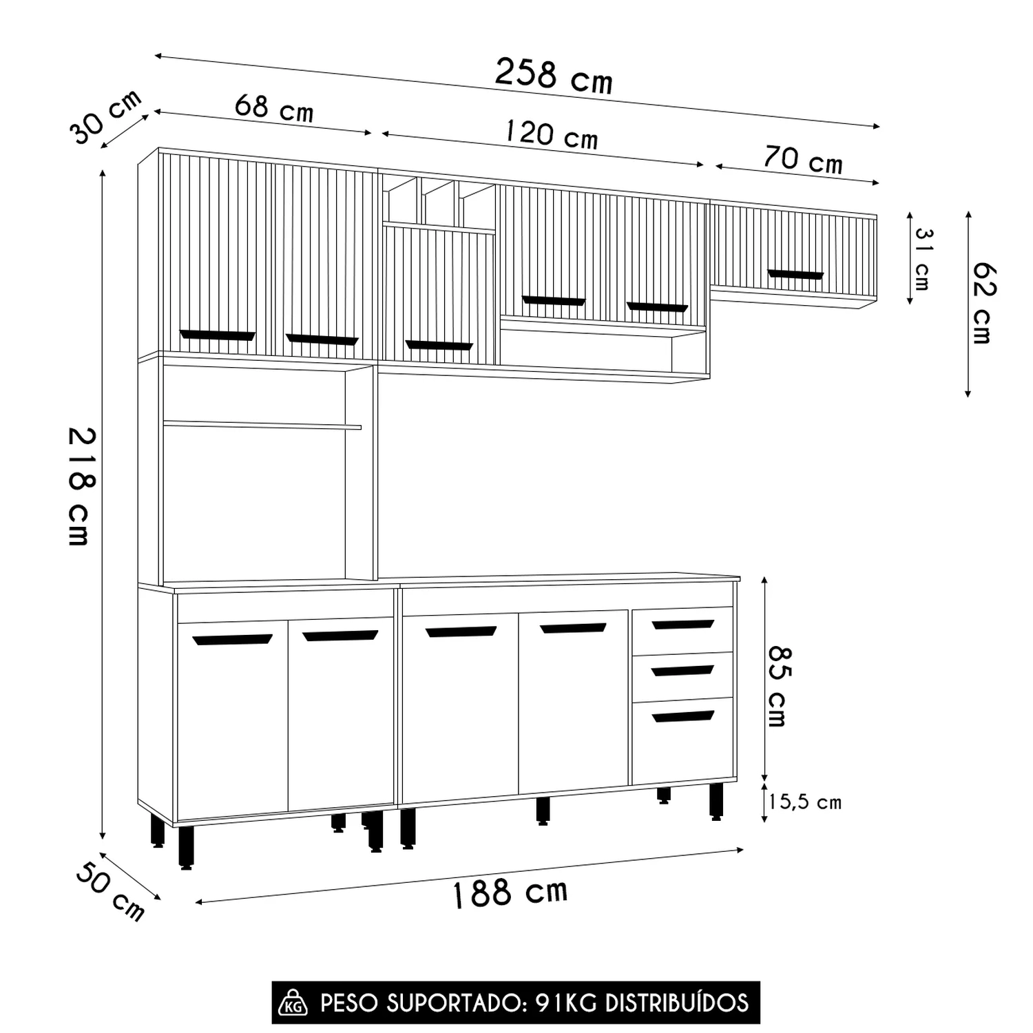 Paneleiro: 68 x 218 x 50 cm.