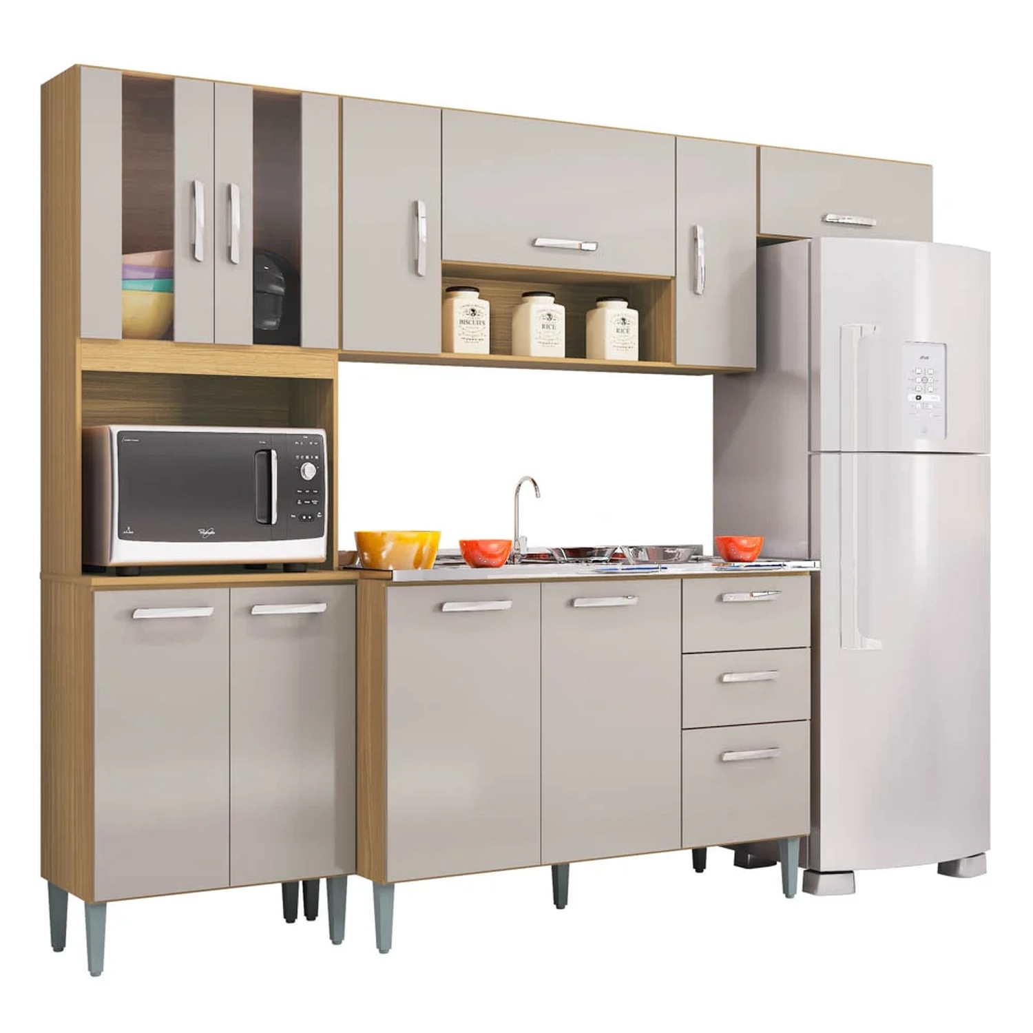 Você sofre com falta de espaço na sua cozinha? Calma! Com a Armário de Cozinha Compacta Completa 244cm Balcão e Pia Inox Livy P11 Damasco/Off White, da Mpozenato, nunca mais você terá coisas espalhadas na cozinha. Vem conferir!