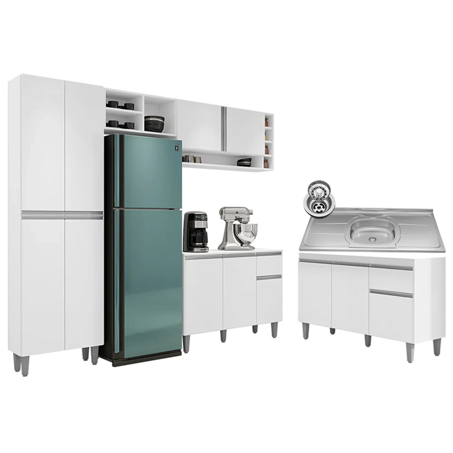 Se você está procurando uma cozinha nova e completa, que tal conhecer a Cozinha Compacta Vanessa e Balcão Gabinete Com Pia Tatiane 120cm Branco, da AJL Móveis?