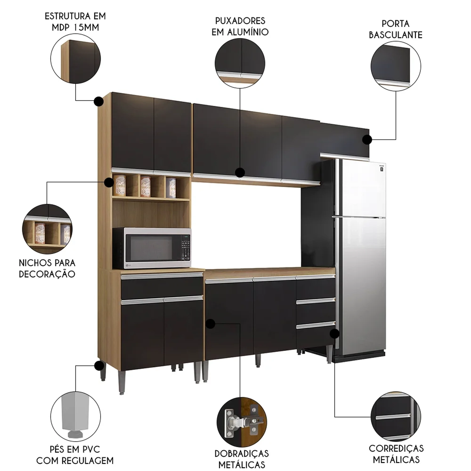 - Espaço para forno elétrico e/ou microondas (Verifique as medidas).