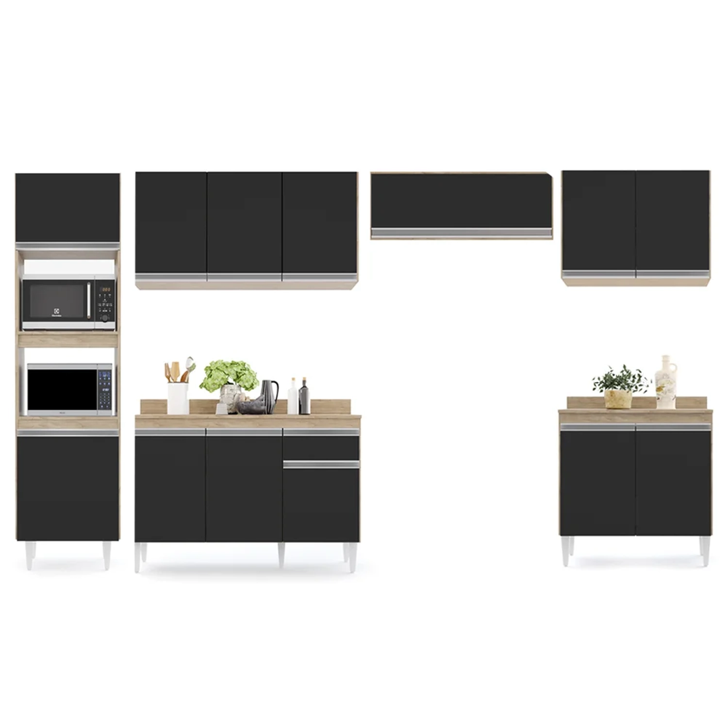 Conteúdo da Embalagem: 3 Armários Aéreos / 1 Paneleiro / 2 Balcões.