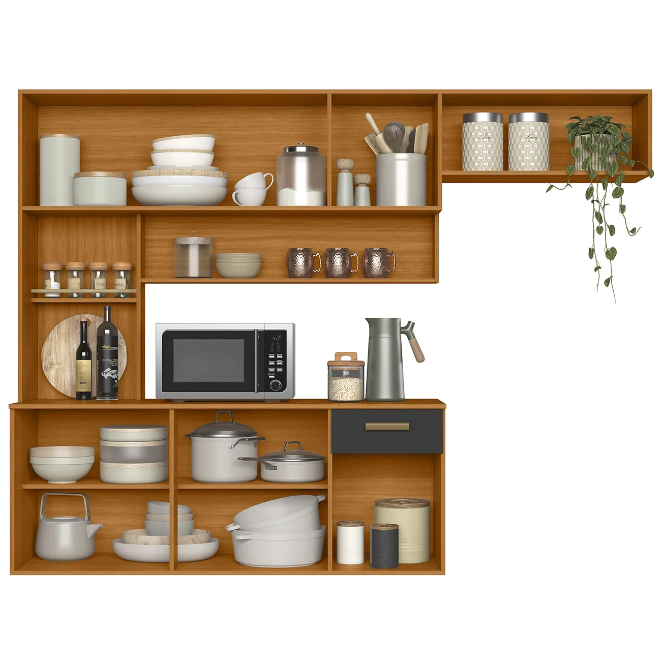 O tampo é ideal para apoiar eletrodomésticos, facilitando o dia a dia. Além disso, o design compacto inclui três Nichos estrategicamente distribuídos, perfeitos para expor objetos decorativos, temperos ou itens essenciais, mantendo tudo sempre ao alcance das mãos de forma prática e charmosa.