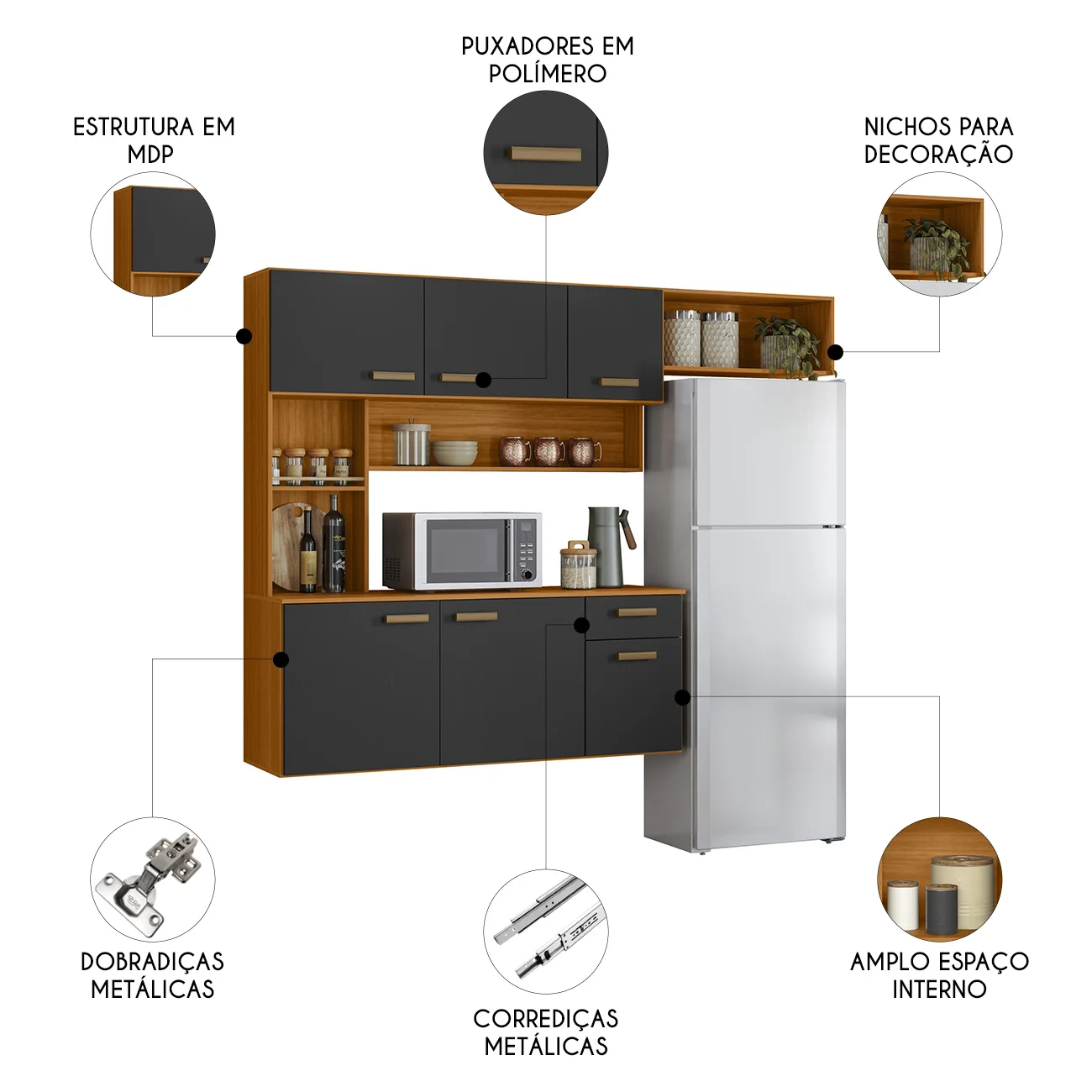 Cozinha Suspensa Lilian Freijó UV/Grafite Acetinado Z44 - Mpozenato