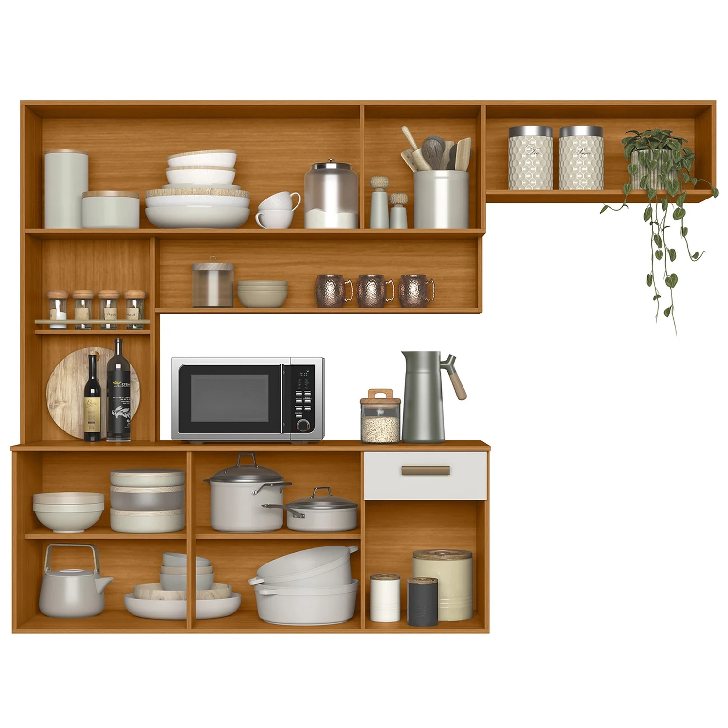 O tampo é ideal para apoiar eletrodomésticos, facilitando o dia a dia. Além disso, o design compacto inclui três Nichos estrategicamente distribuídos, perfeitos para expor objetos decorativos, temperos ou itens essenciais, mantendo tudo sempre ao alcance das mãos de forma prática e charmosa.