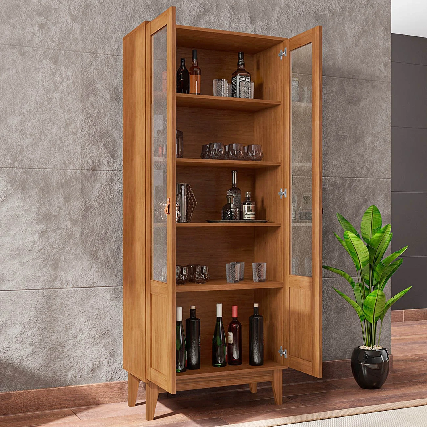 A Cristaleira com Portas de Vidro Sala de Jantar Liria C14 Cedro, da Mpozenato, combina perfeitamente funcionalidade e design.