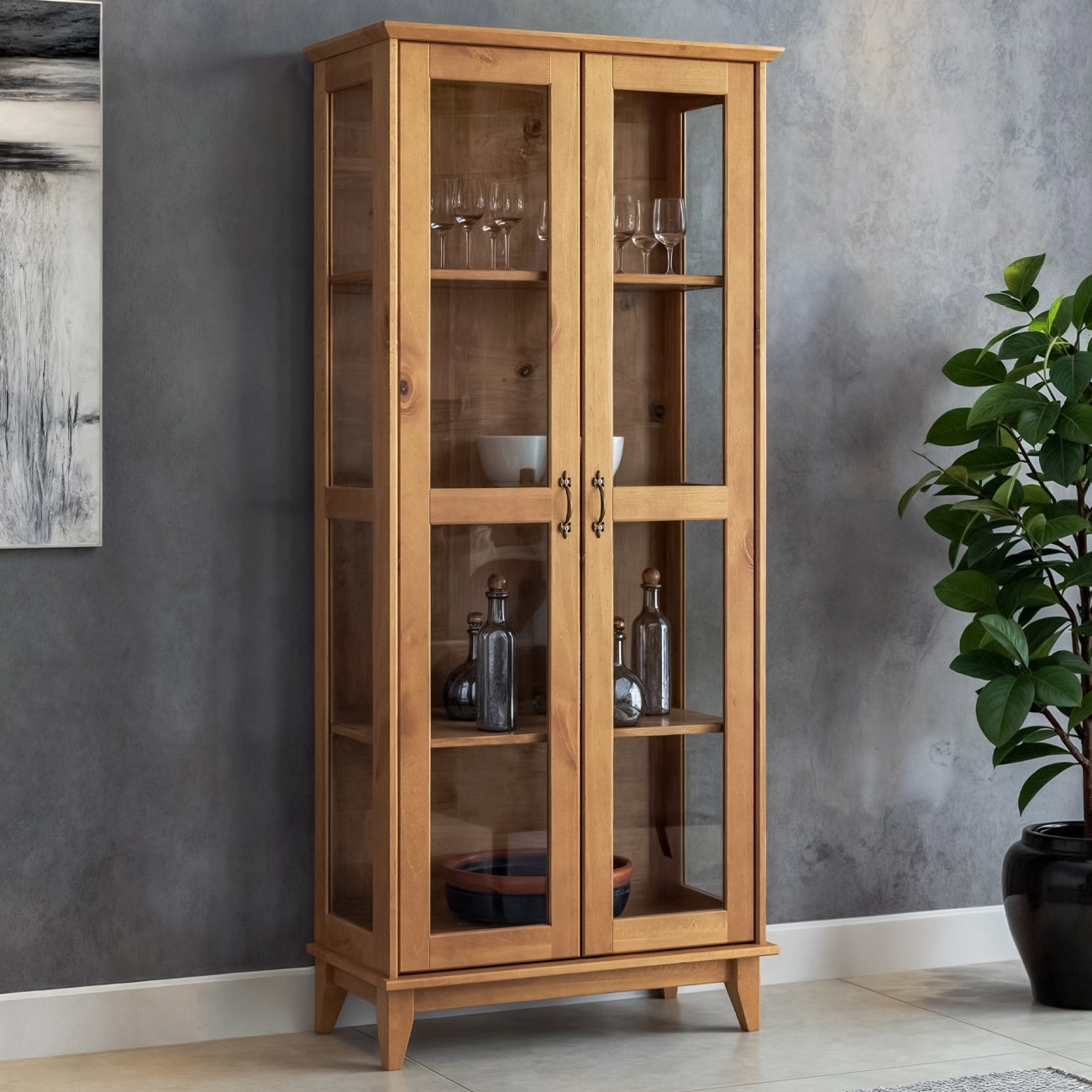 Cristaleira de Madeira 2 Portas de Vidro Hazel Carvalho Z25 - Mpozenato