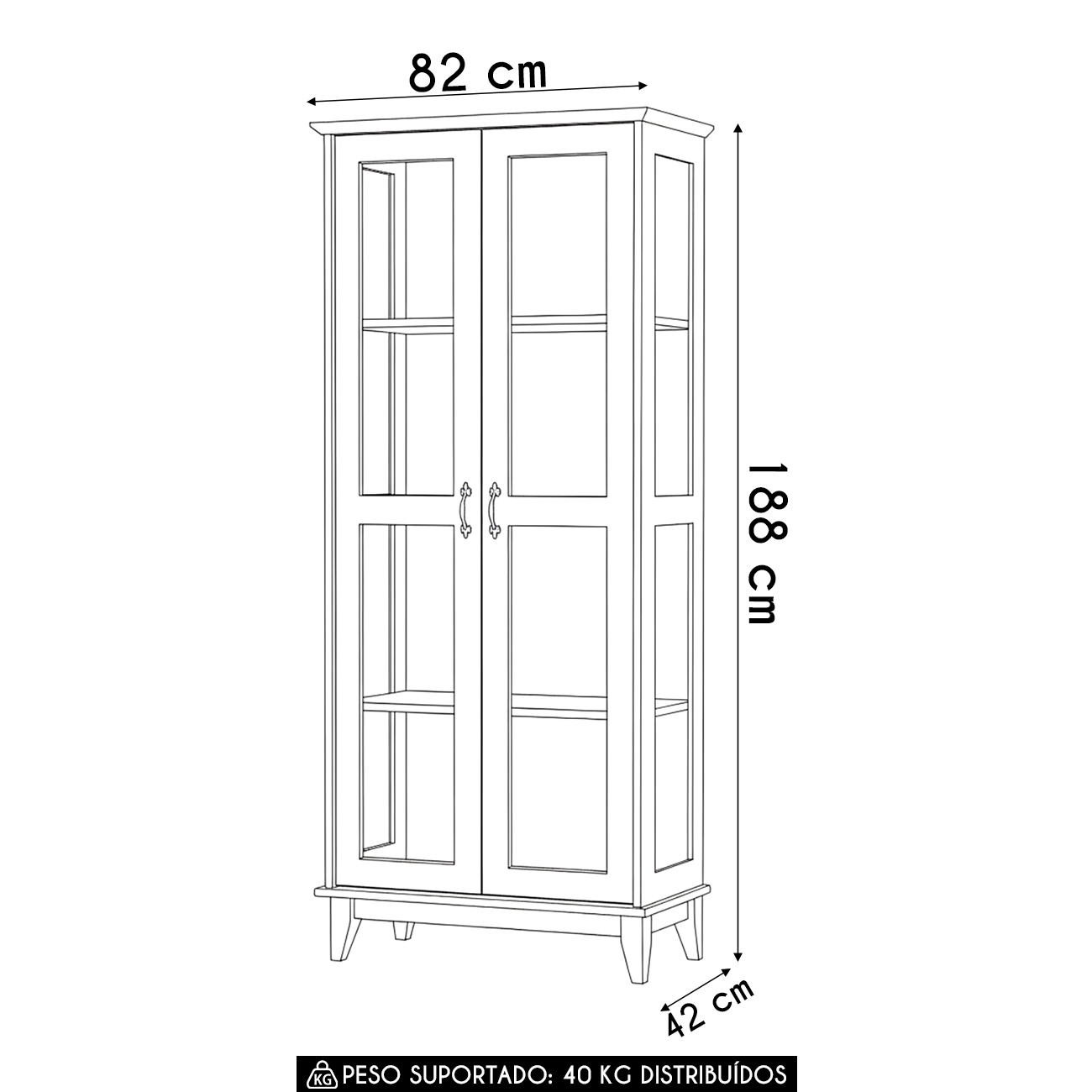 Peso Suportado Distribuído: 40 kg Distribuídos.