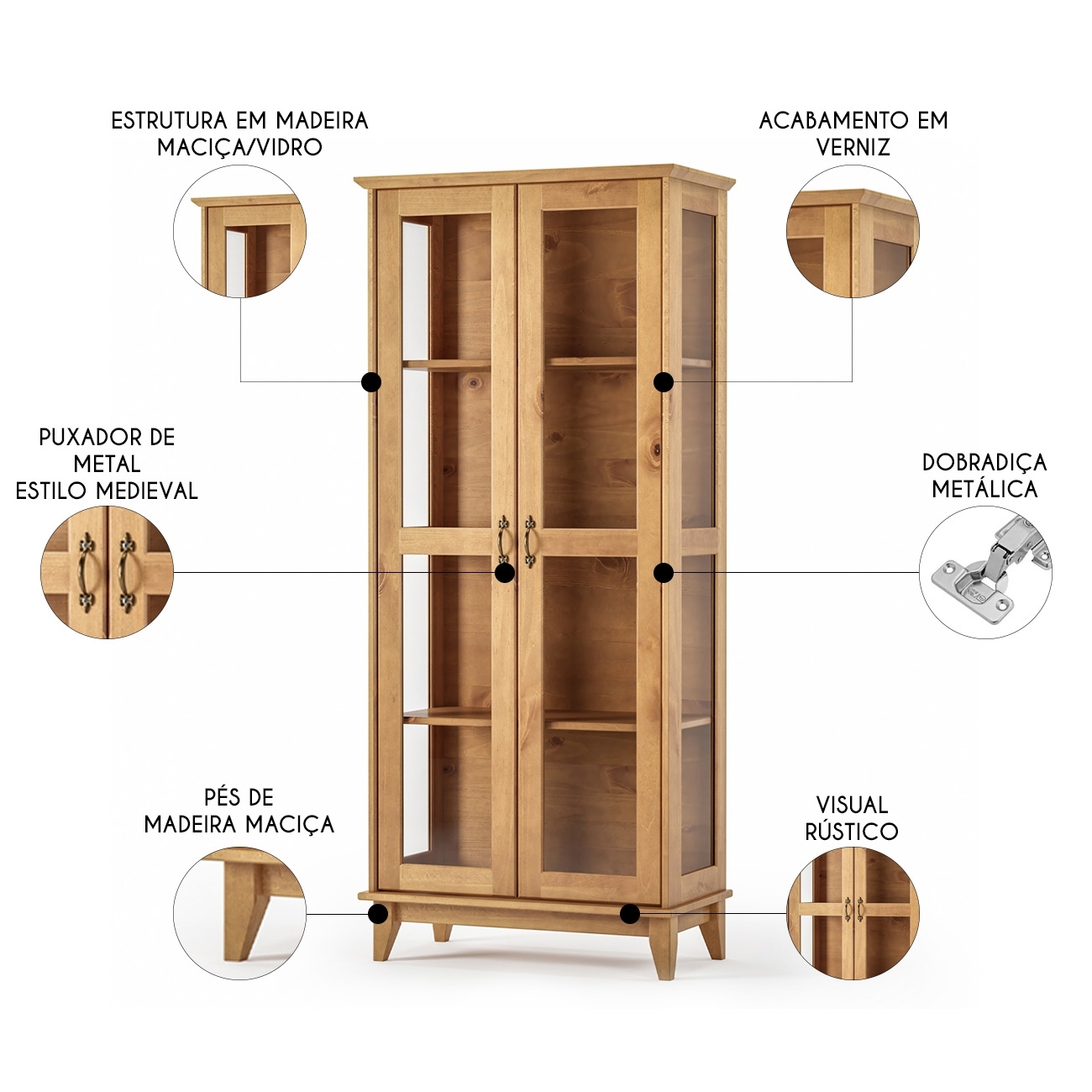 Material da Estrutura: Madeira maciça/Vidro.