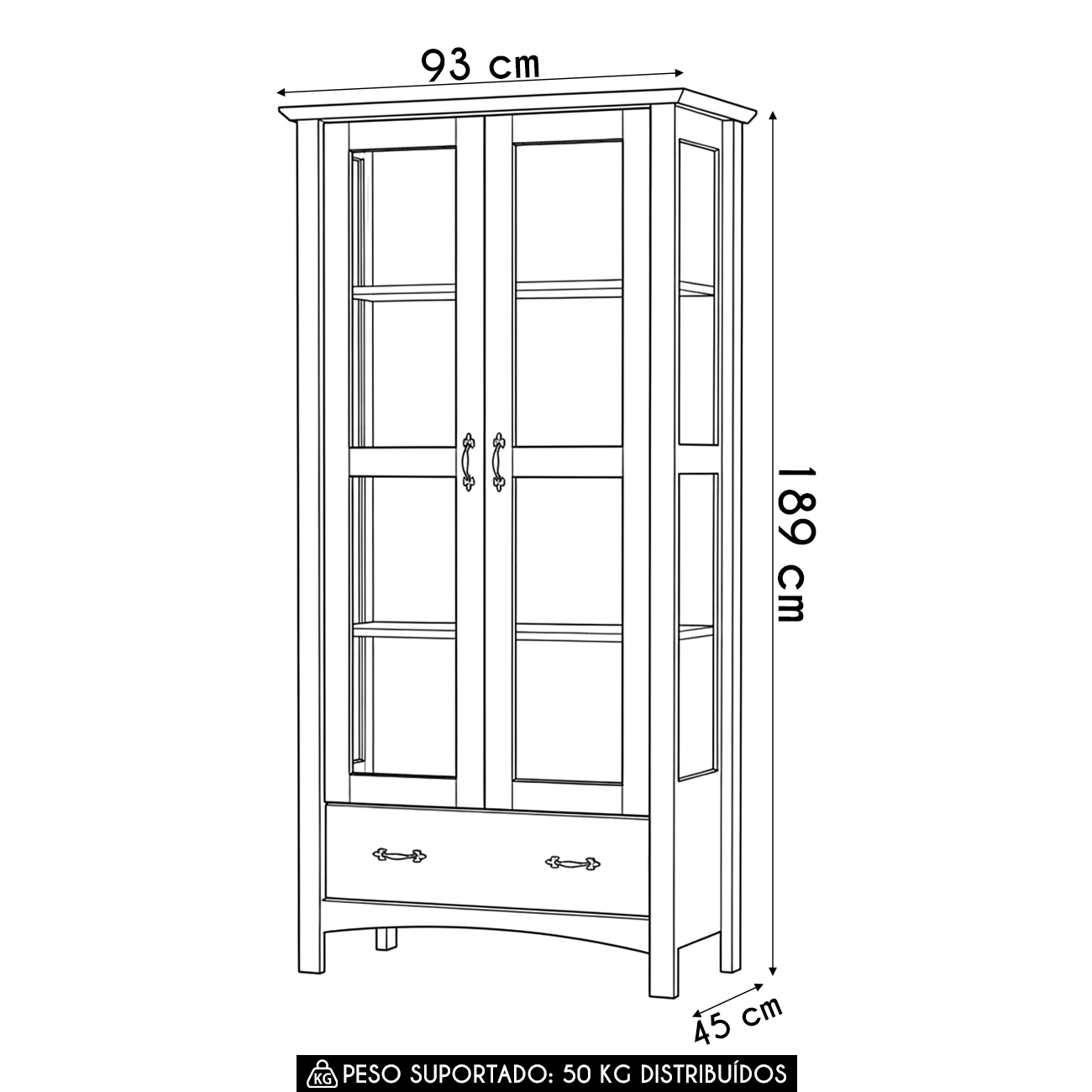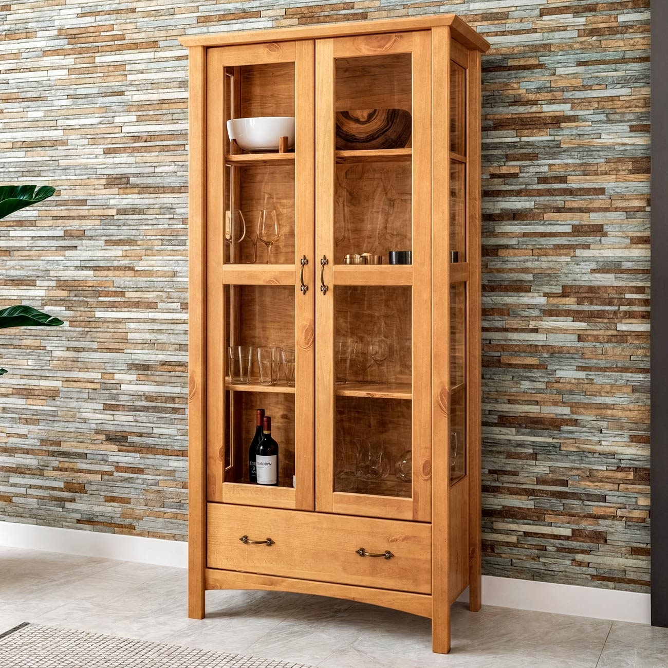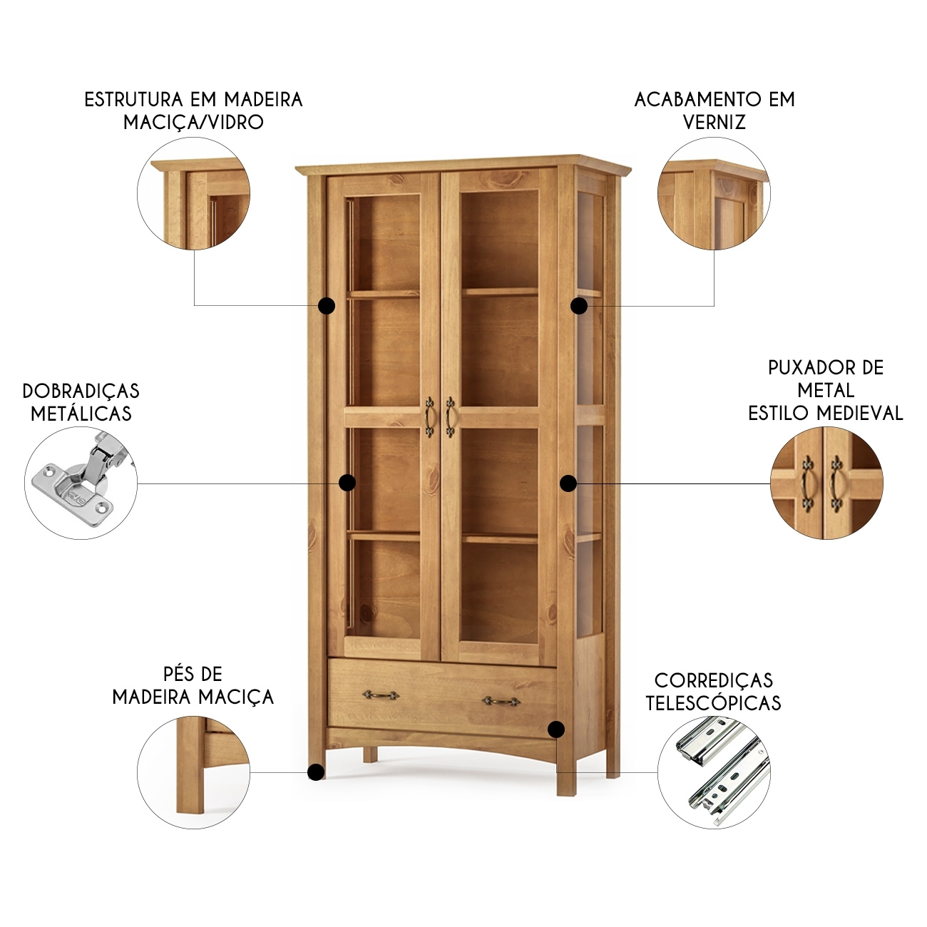 Cristaleira de Madeira 2 Portas e Gaveta Hazel Carvalho Z25 - Mpozenato