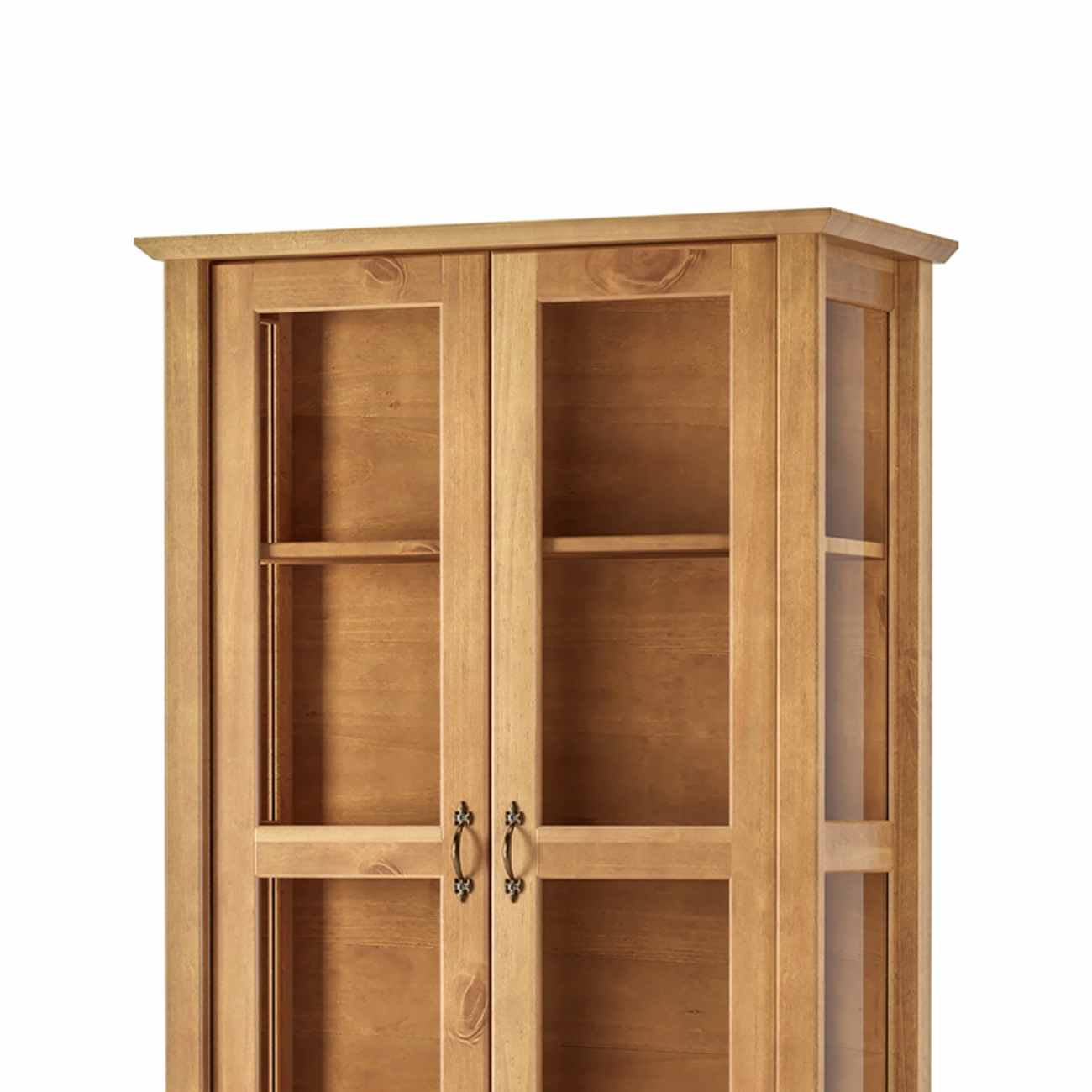 A estrutura em madeira maciça da Cristaleira combinada às laterais envidraçadas amplia a percepção do espaço e adiciona elegância, enquanto garante firmeza e durabilidade no uso diário com naturalidade.