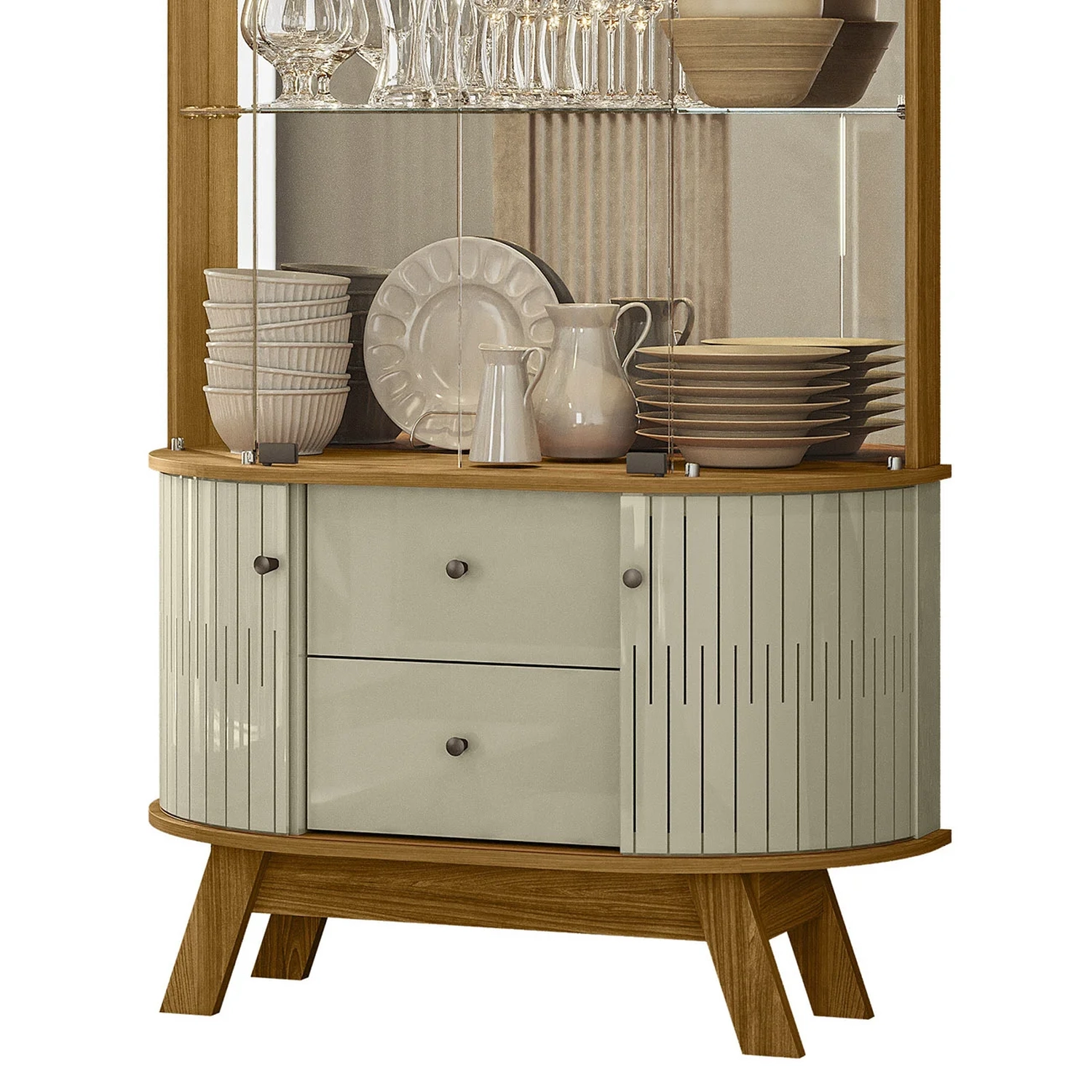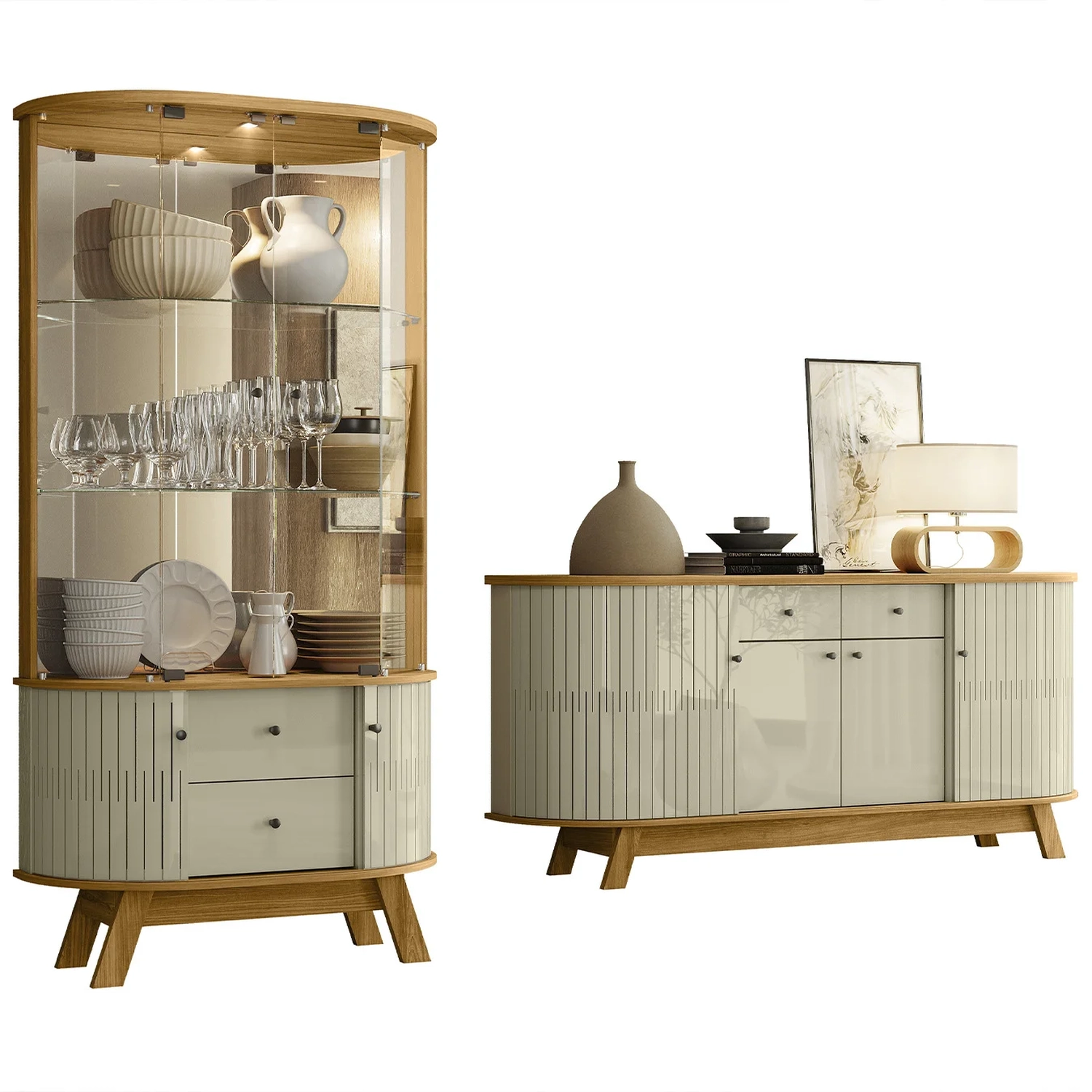 O Cristaleira de Vidro e Buffet Eva Z10 Cumaru/Opala, da Mpozenato, é a combinação perfeita de sofisticação e funcionalidade para sua Sala de Estar.