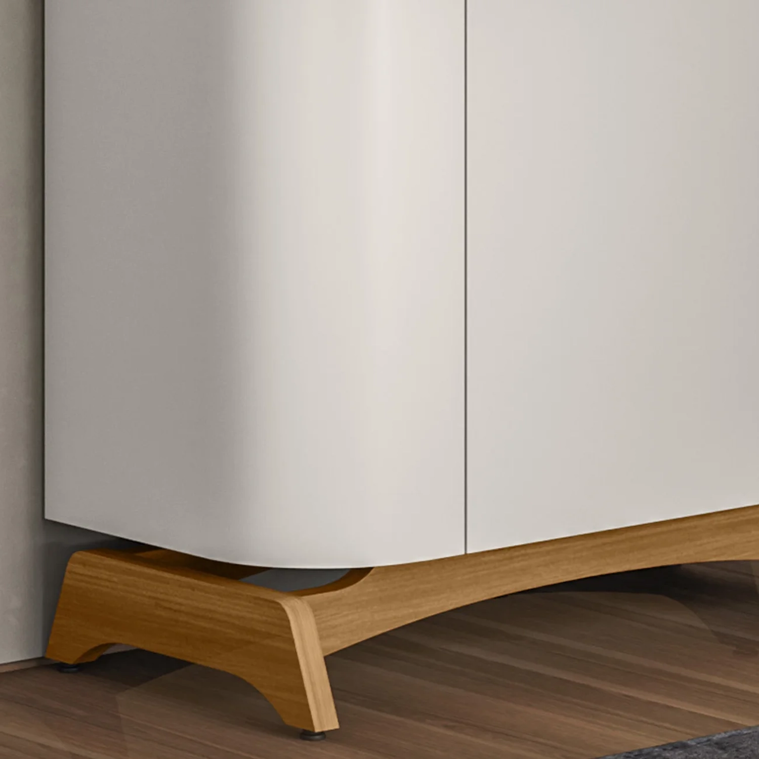 As portas da Cristaleira de Vidro contam com puxadores em alumínio e dobradiças metálicas. Os pés curvos e robustos garantem firmeza à estrutura e reforçam o visual com um toque de elegância.