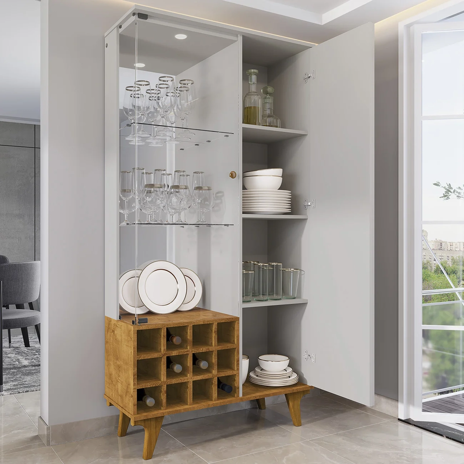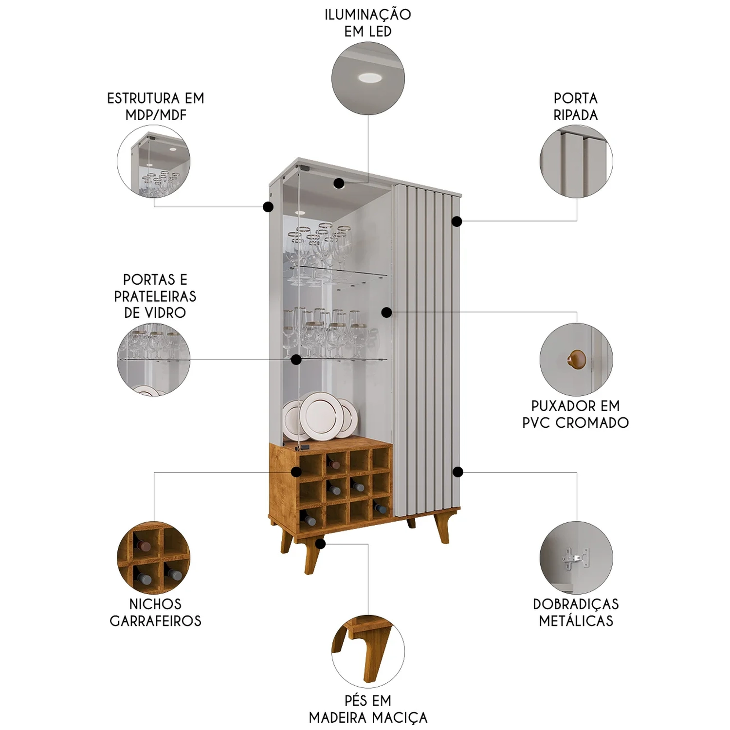 Cristaleira Porta de Vidro Com Adega 91cm Lauana Off/Naturalle B02 - Mpozenato