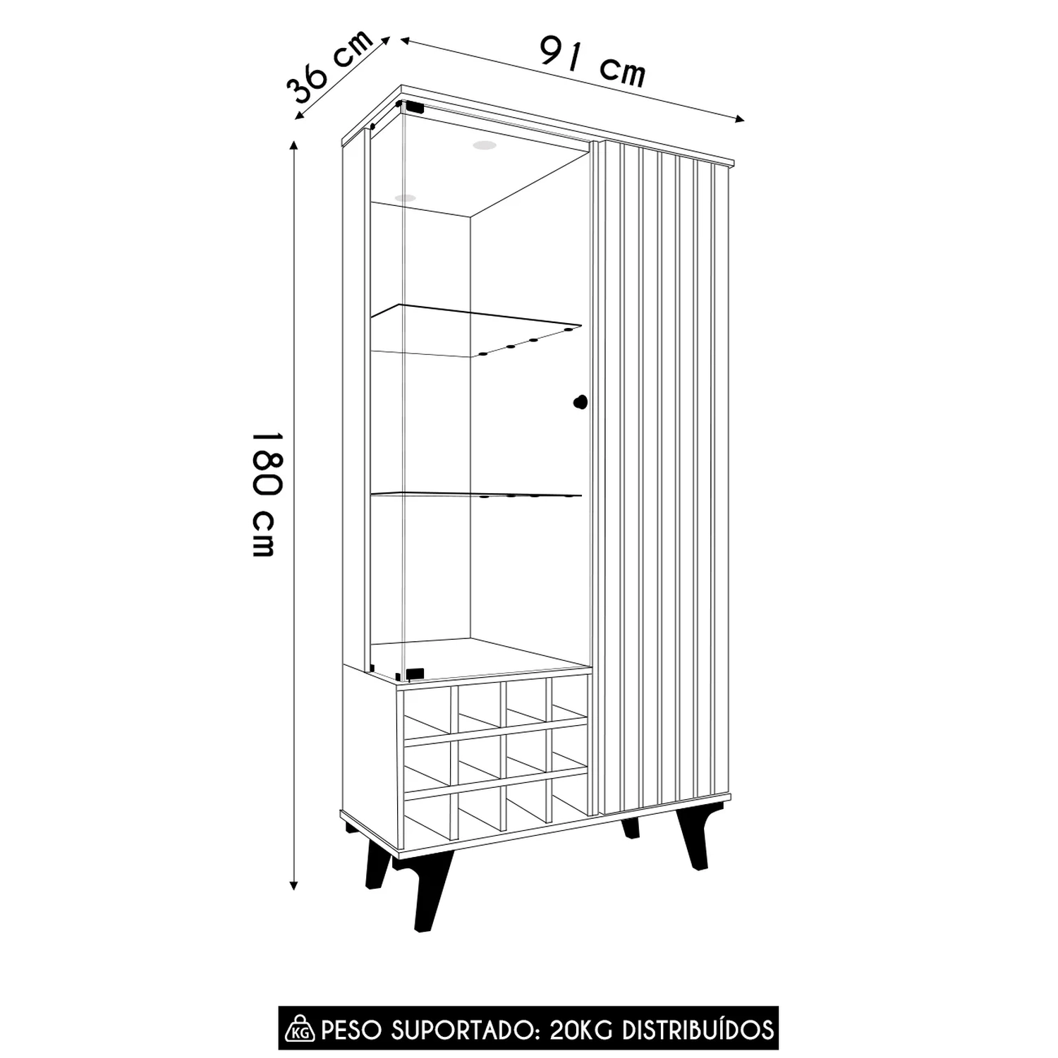 A Cristaleira Com Adega conta com nichos ideais para armazenar garrafas de forma segura e organizada, além de um espaço interior com divisões bem distribuídas, que oferecem praticidade no dia a dia e facilitam a organização de diversos itens, como taças, utensílios ou objetos decorativos
