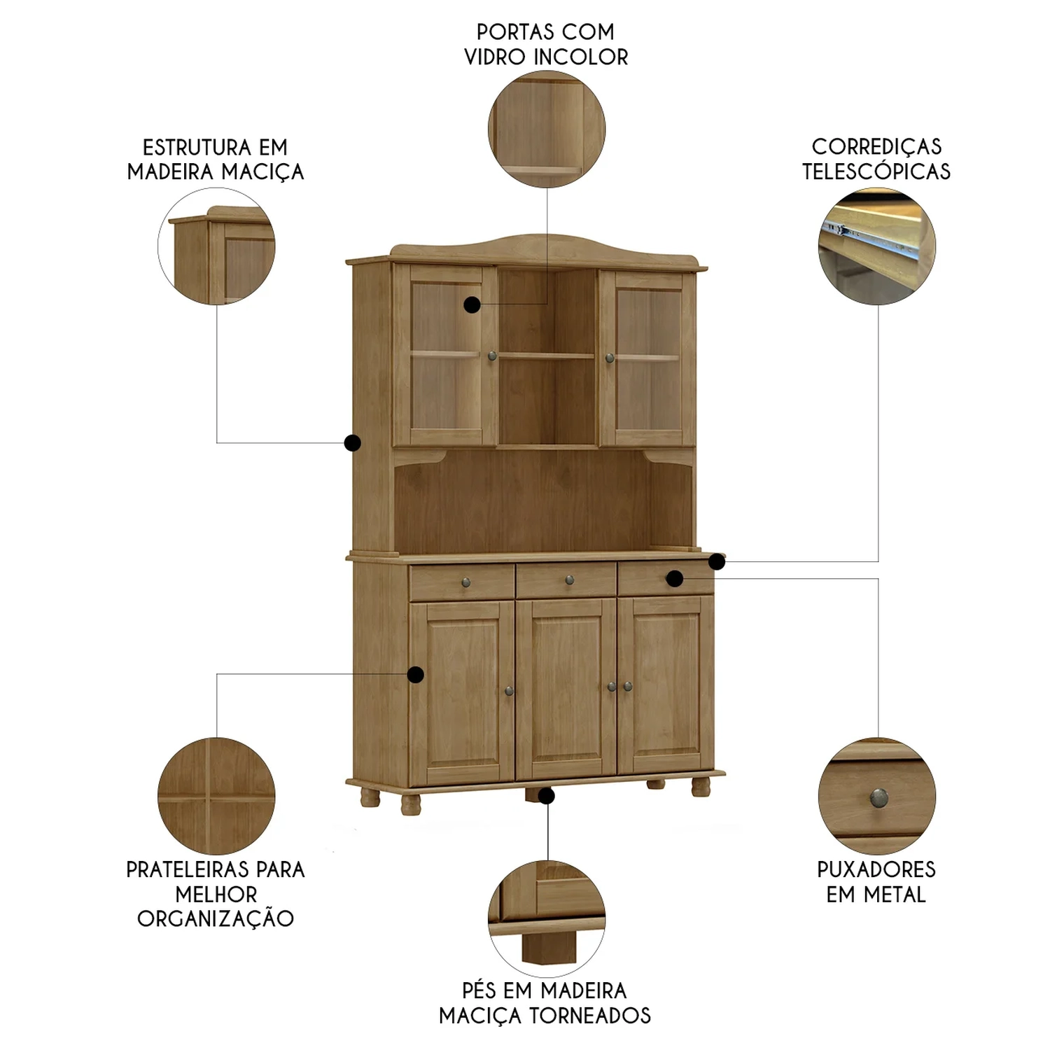 Esta Cristaleira Buffet traz um design rústico, ideal para complementar cozinhas, Salas de Jantar ou espaços gourmet. Fabricada em madeira maciça, oferece alta resistência e durabilidade.