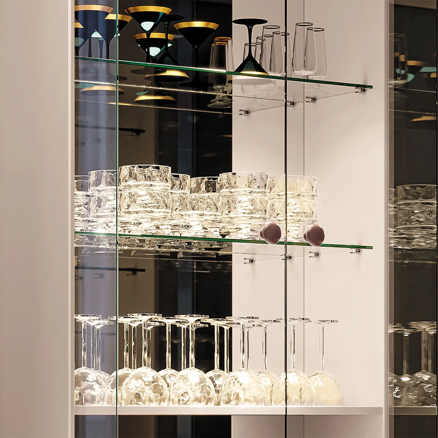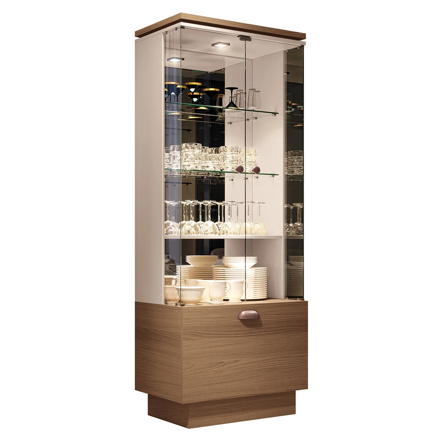 Esta Cristaleira Moderna possui 2 prateleiras de vidro e 1 de MDF, que permite organizar os itens de acordo com sua preferência. O fundo de espelho amplia o espaço e realça a beleza dos objetos. O fechamento magnético garante a praticidade e a proteção dos itens. A Cristaleira Adega tem luminária de LED embutida na parte superior cria um efeito sofisticado e ilumina os objetos. A Cristaleira de Vidro tem uma gaveta inferior que possui uma adega interna para 6 garrafas, ideal para armazenar seus vinhos favoritos. Os puxadores são em poliestireno e acabamento metálico fosco é resistente e combina com o design moderno da cristaleira.