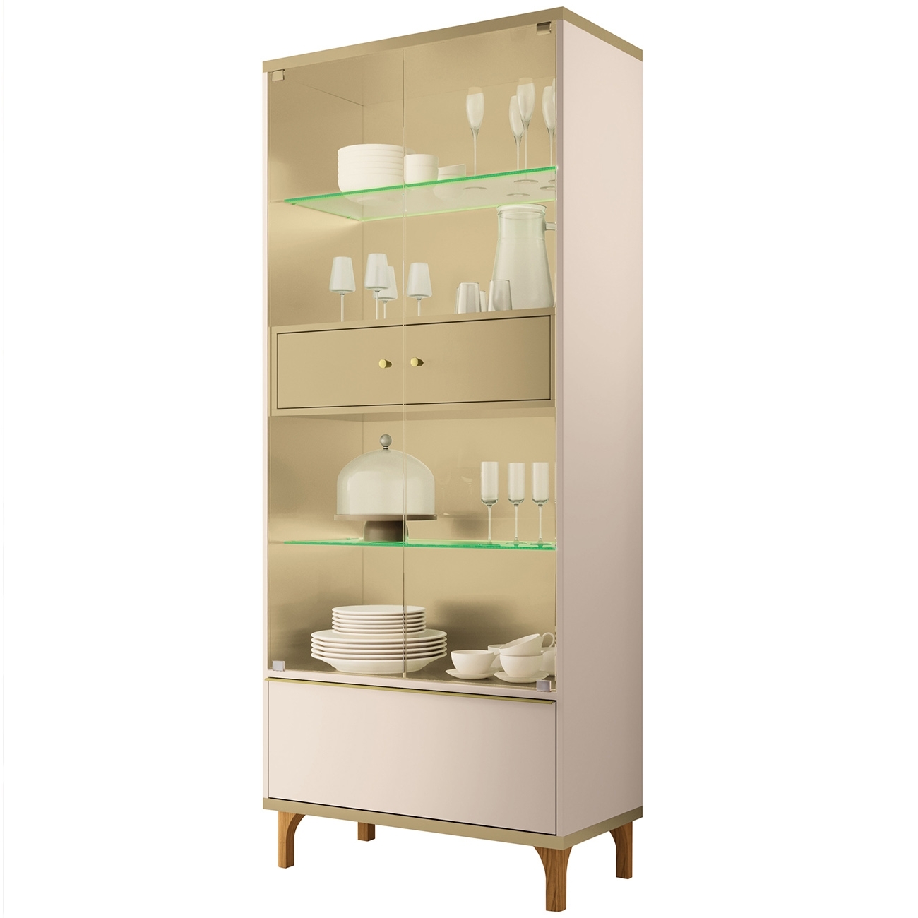 Cristaleira Portas de Vidro Com LED 76cm Delux Off/Champanhe H01 - Mpozenato