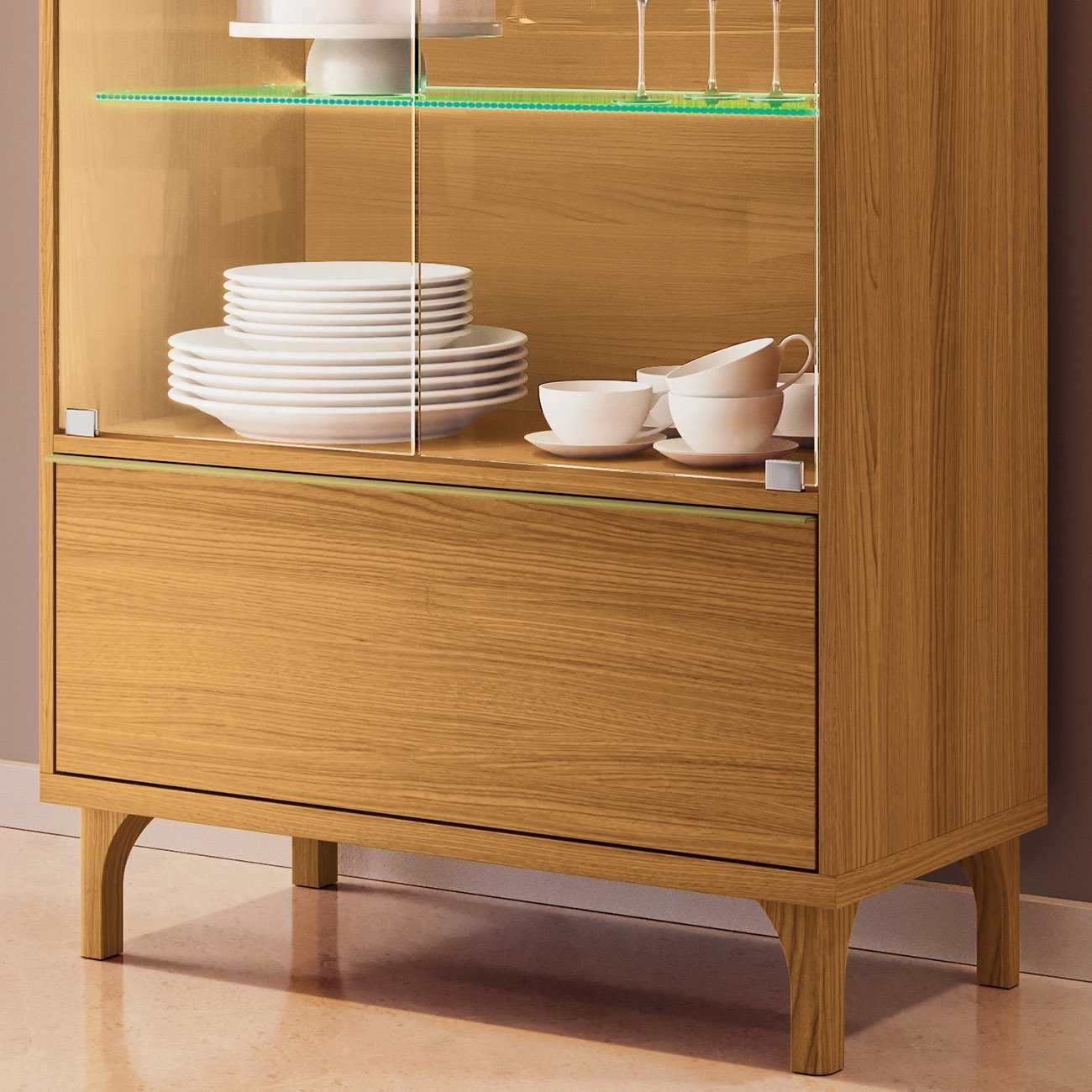 Cristaleira Portas de Vidro Com LED 76cm Lumina Cinamomo - HB Móveis