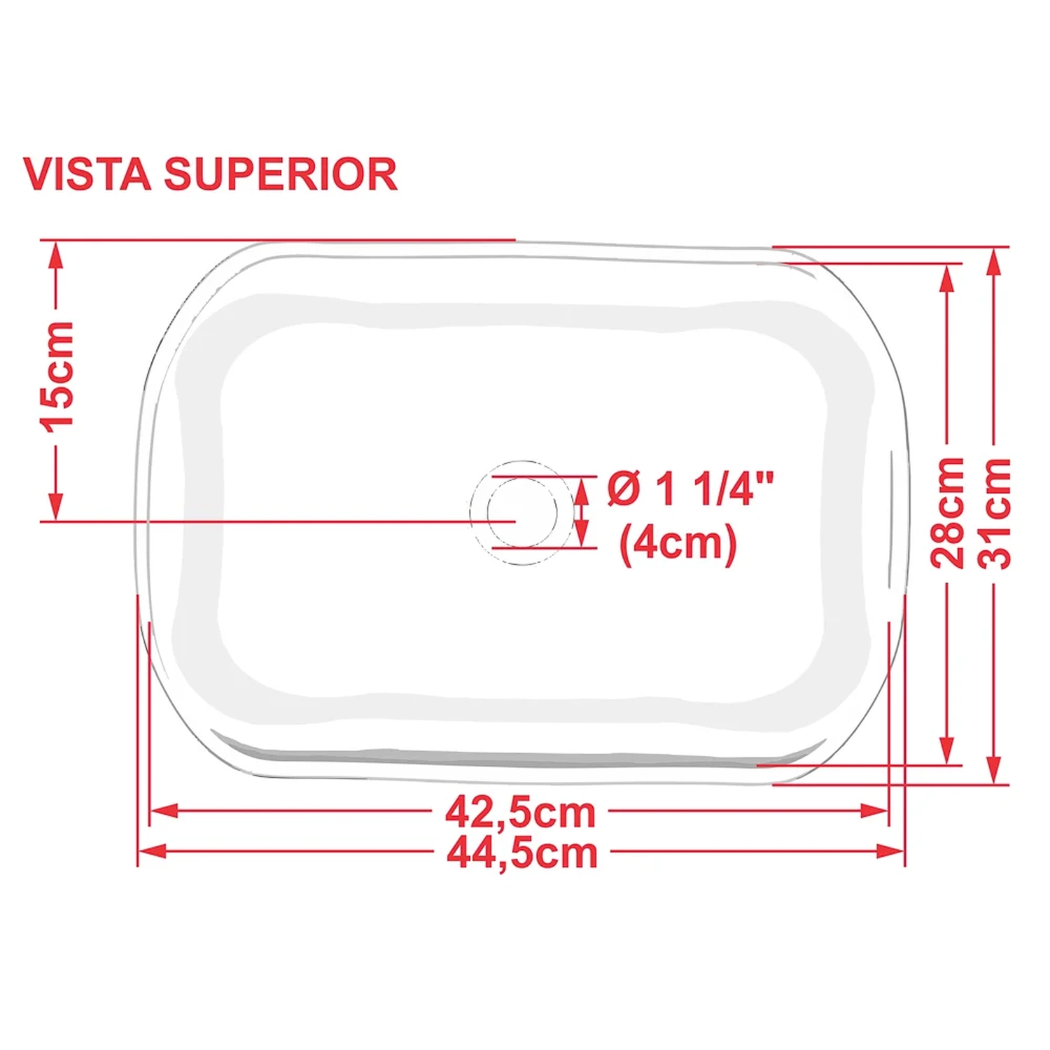 Dimensões do Produto Largura: 44,5 cm. Altura: 14,5 cm. Profundidade: 31 cm. Peso: 4,7 Kg.