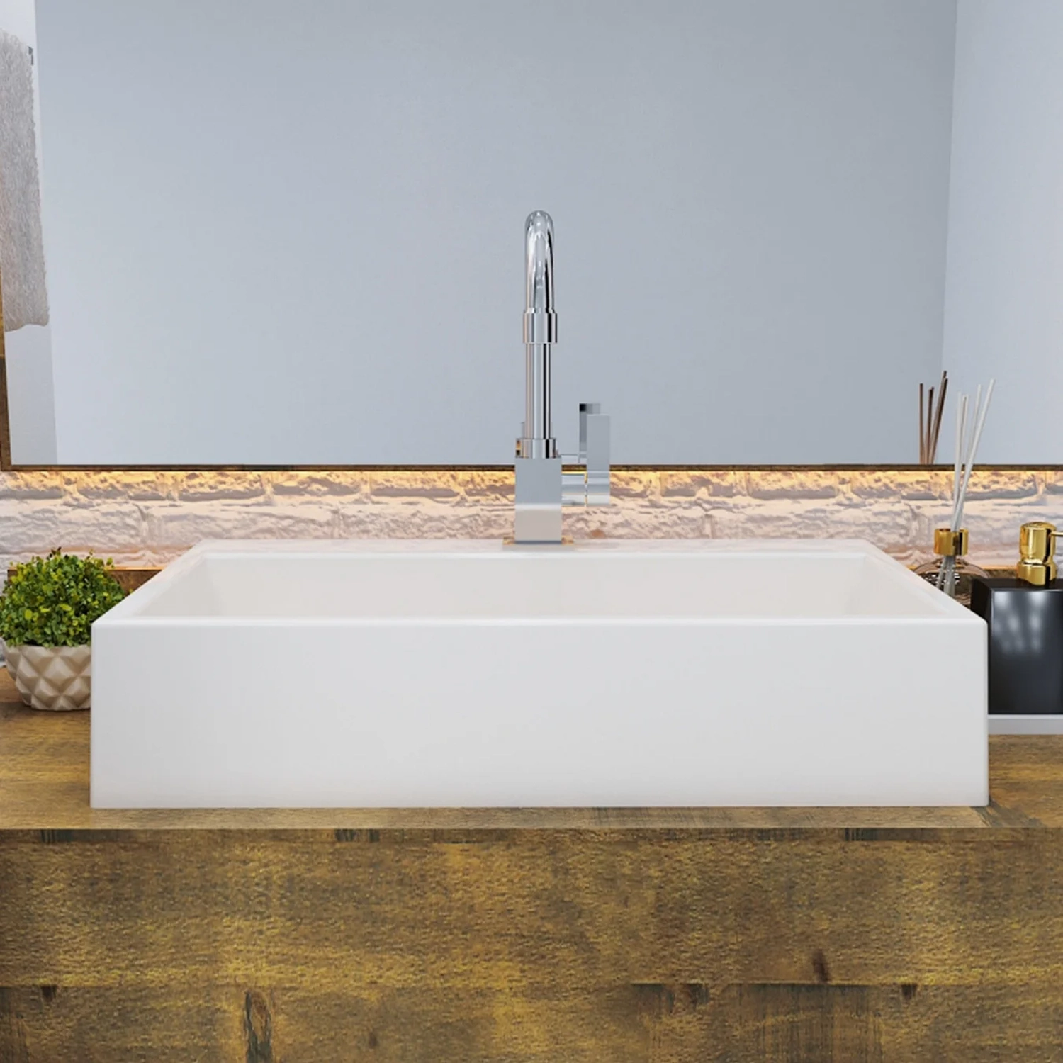 Fabricada em mármore sintético, um material composto por resina poliéster e carga mineral, com camada de Gel Coat e acabamento de pintura poliéster PU, ela é bastante semelhante à louça, porém mais econômica. A Cuba de Apoio combina resistência e durabilidade, além de já vir com furação para torneira, o que torna a instalação ainda mais prática. O acabamento em Hard Lacca PU garante brilho e proteção, proporcionando um visual sofisticado e fácil de manter.