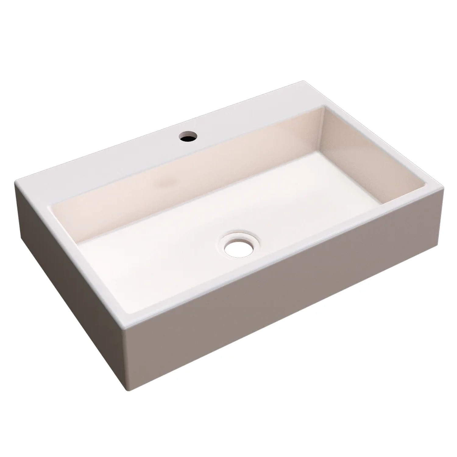 A qualidade fica por conta do material utilizado na confecção dessa cuba, sendo de mármore sintético com acabamento em Hard Lacca PU, semelhante à louça, bastante resistente e bem mais econômica. Outro detalhe importante é a furação na parte interna da pia que é de 4cm para encaixe da válvula de 1 1/4, o que proporciona um excelente escoamento da água. Já para a instalação da torneira 7/8 o furo é de 3,2cm.