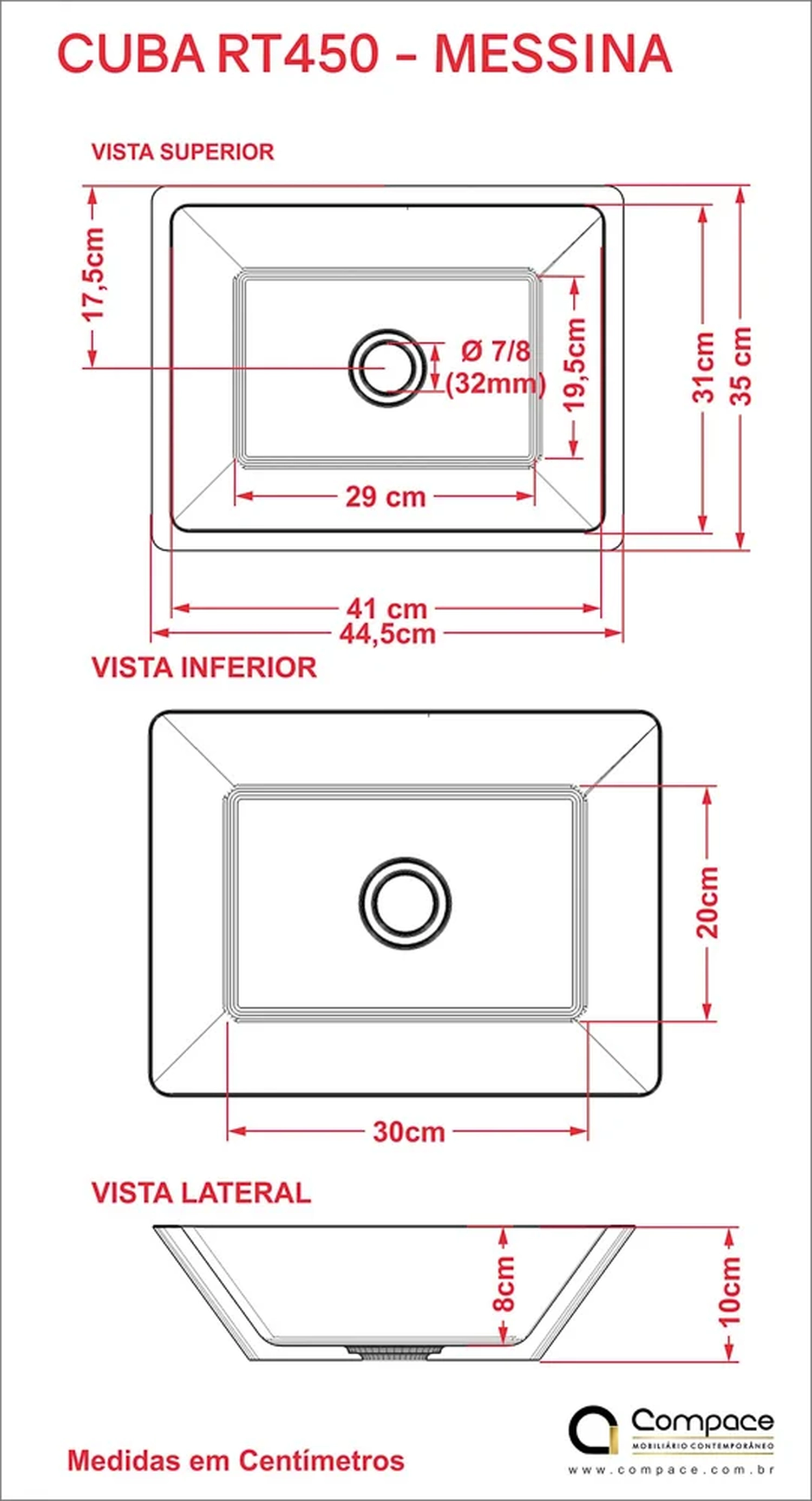 Conteúdo da Embalagem: 1 Cuba de Apoio.