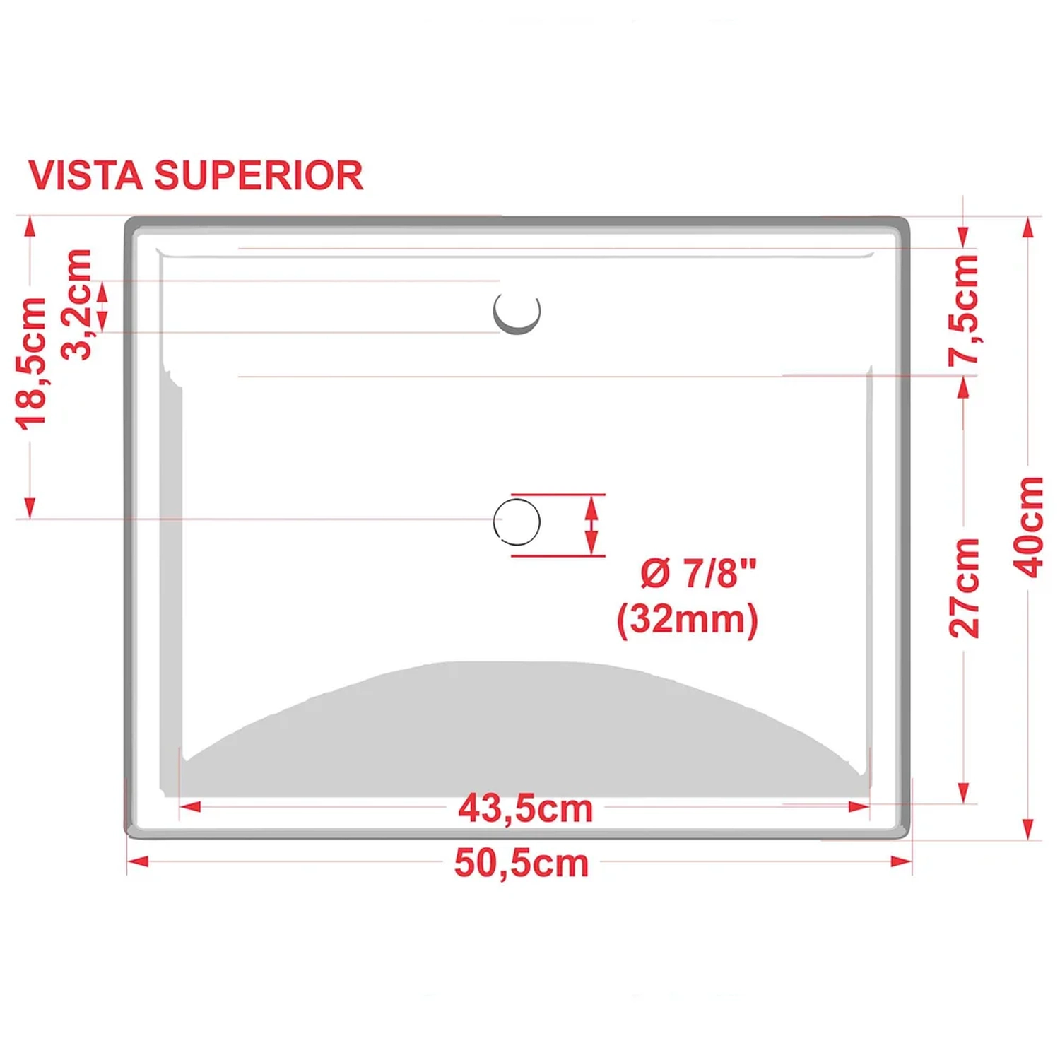 Diâmetro do furo para torneira: 3,2 cm.