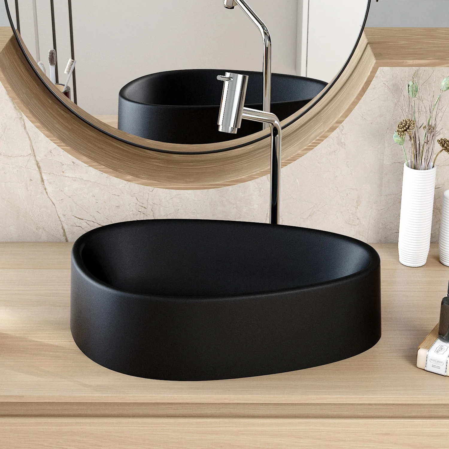 Deixar seu Banheiro moderno, funcional e agradável nunca foi tão simples. A Cuba Pia Para Banheiro Gota 43cm Maitê C08 Preto, da Mpozenato, com seu design exclusivo em formato de gota com bordas arredondadas, é perfeita para adicionar um toque contemporâneo e sofisticado, tornando o ambiente mais acolhedor e elegante.