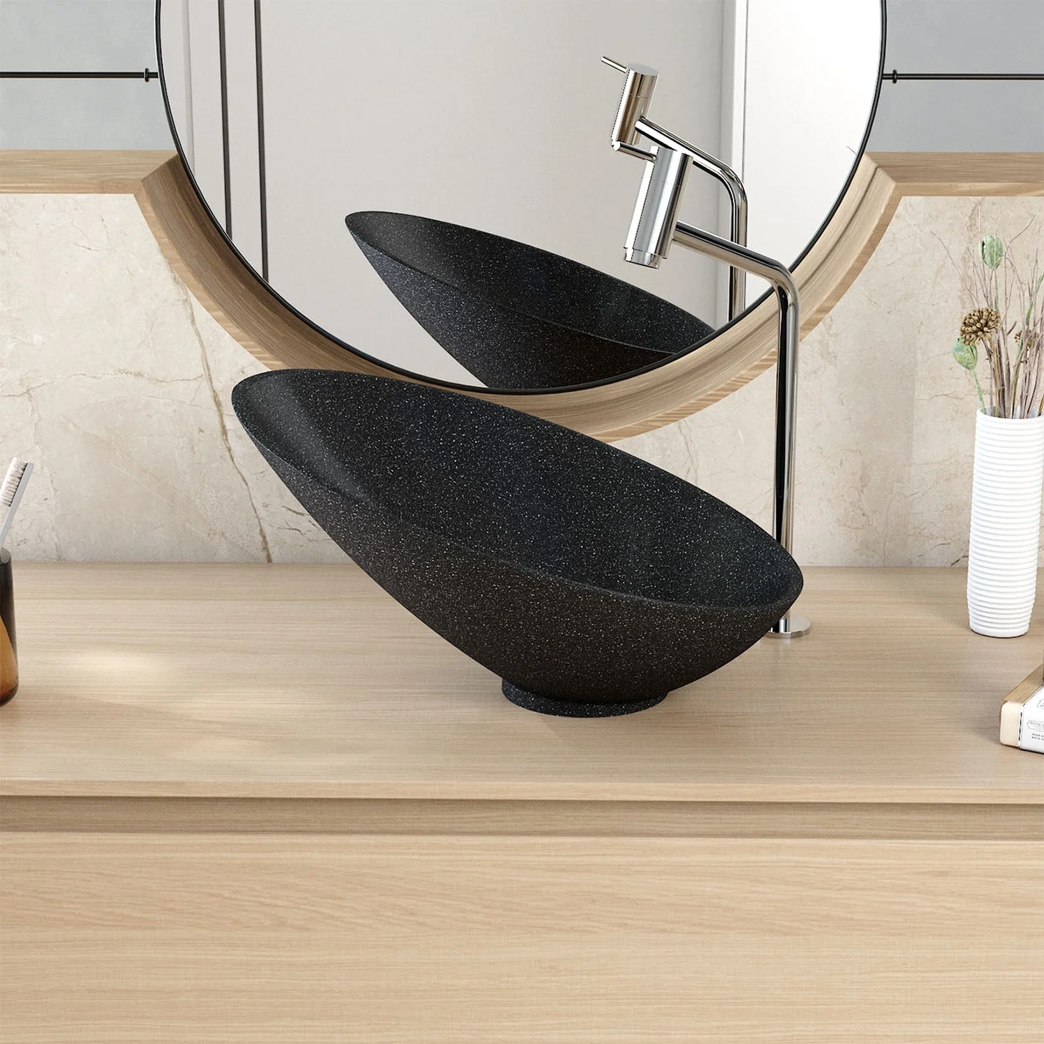 Fabricada em lapimat, um material inovador que combina resina poliéster, cargas minerais selecionadas e aditivos, a Cuba de Apoio se destaca pela resistência e durabilidade excepcionais. A dupla camada de pintura poliéster PU de alta performance, complementada por uma de verniz protetor resultam em um acabamento matte fosco com toque acetinado impecável.