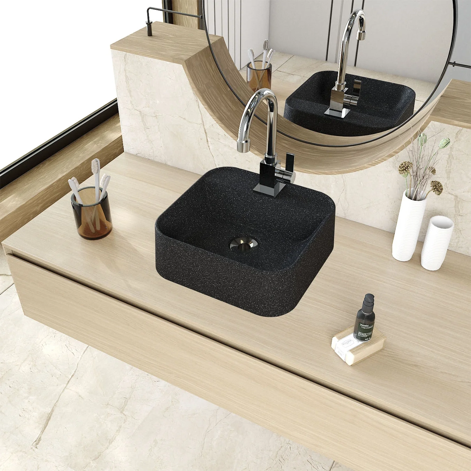 Deixar seu Banheiro moderno, funcional e agradável nunca foi tão simples. A Cuba Pia Para Banheiro Quadrada 32cm Ágata C08 Preto Granit, da Mpozenato, com seu design quadrado de bordas finas e arredondadas, é perfeita para adicionar um toque contemporâneo e sofisticado, tornando o ambiente mais acolhedor e elegante.
