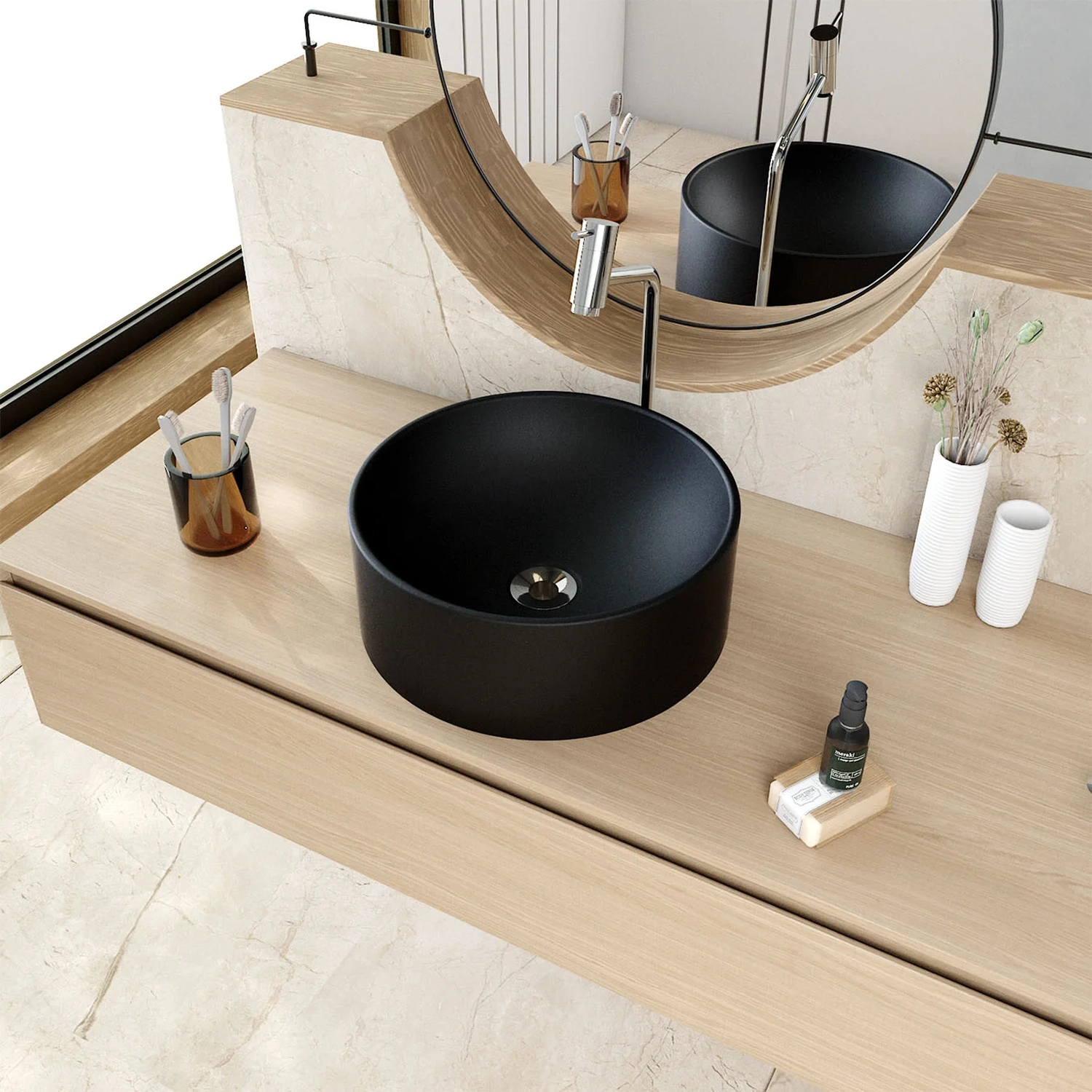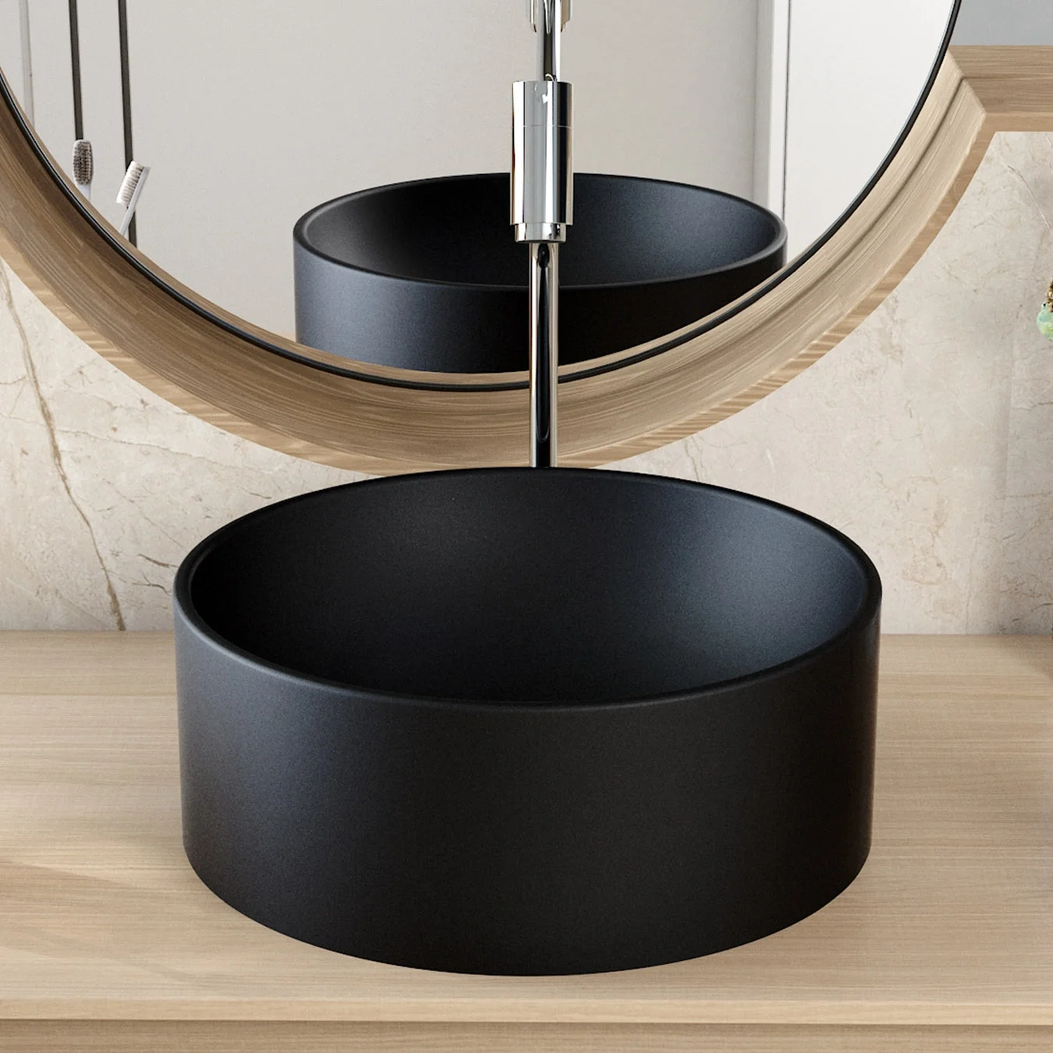 Deixar seu Banheiro moderno, funcional e agradável nunca foi tão simples. A Cuba Pia Para Banheiro Redonda 34cm Sara C08 Preto, da Mpozenato, com seu design exclusivo de formato redondo e bordas finas, é perfeita para adicionar um toque contemporâneo e sofisticado, tornando o ambiente mais acolhedor e elegante.