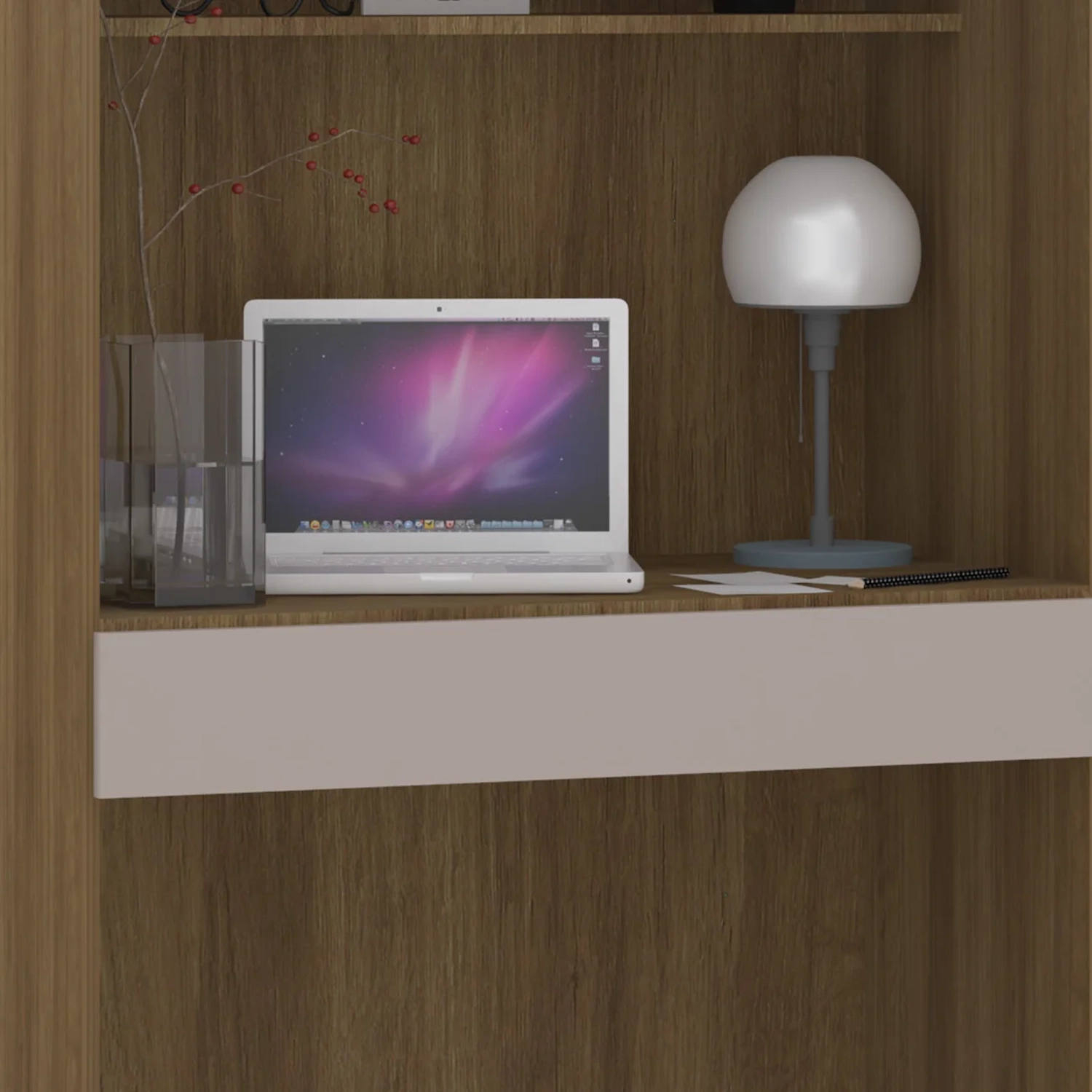 Às três prateleiras fixas facilitam a organização de itens decorativos, pastas ou cadernos, enquanto sua gaveta logo abaixo do tampo ajuda a manter o espaço limpo e funcional no dia a dia.