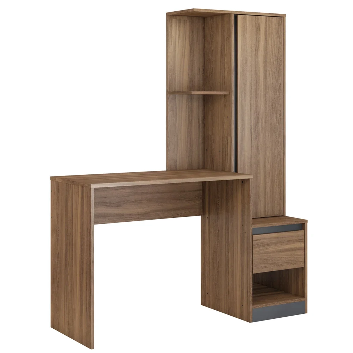 Seu armário possui divisões bem distribuídas que acompanha uma porta, prateleiras, nicho e uma gaveta para guardar os pertences e objetos que mais utiliza, para deixar ainda mais perfeito acompanha uma mesa de computador acoplada com amplo espaço no seu tampo para colocar notebook ou computador ajudando no dia a dia.