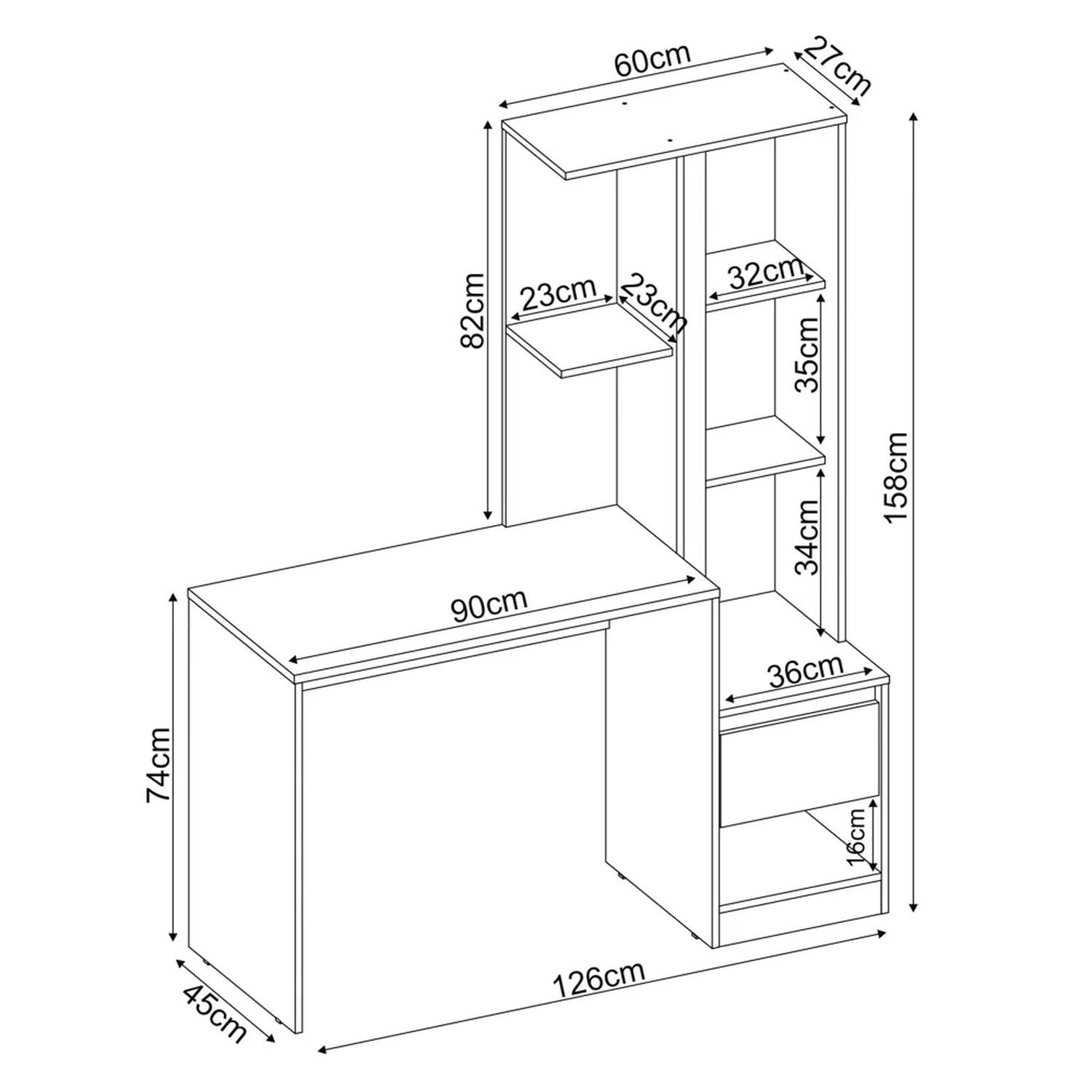 Conteúdo da Embalagem: 1 Escrivaninha, 1 Armário.