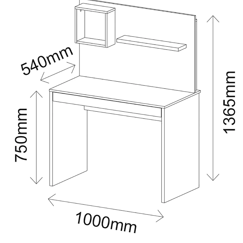 Com o painel fixado no tampo e um tamanho compacto, essa escrivaninha é perfeita para ambientes com pouco espaço, porém, sem deixar de ser versátil, pois possui 1 gaveta ampla com trilho telescópico e, ainda, 1 nicho e 1 prateleira fixados no painel, ideal para organizar seu material de trabalho ou dispor objetos decorativos.