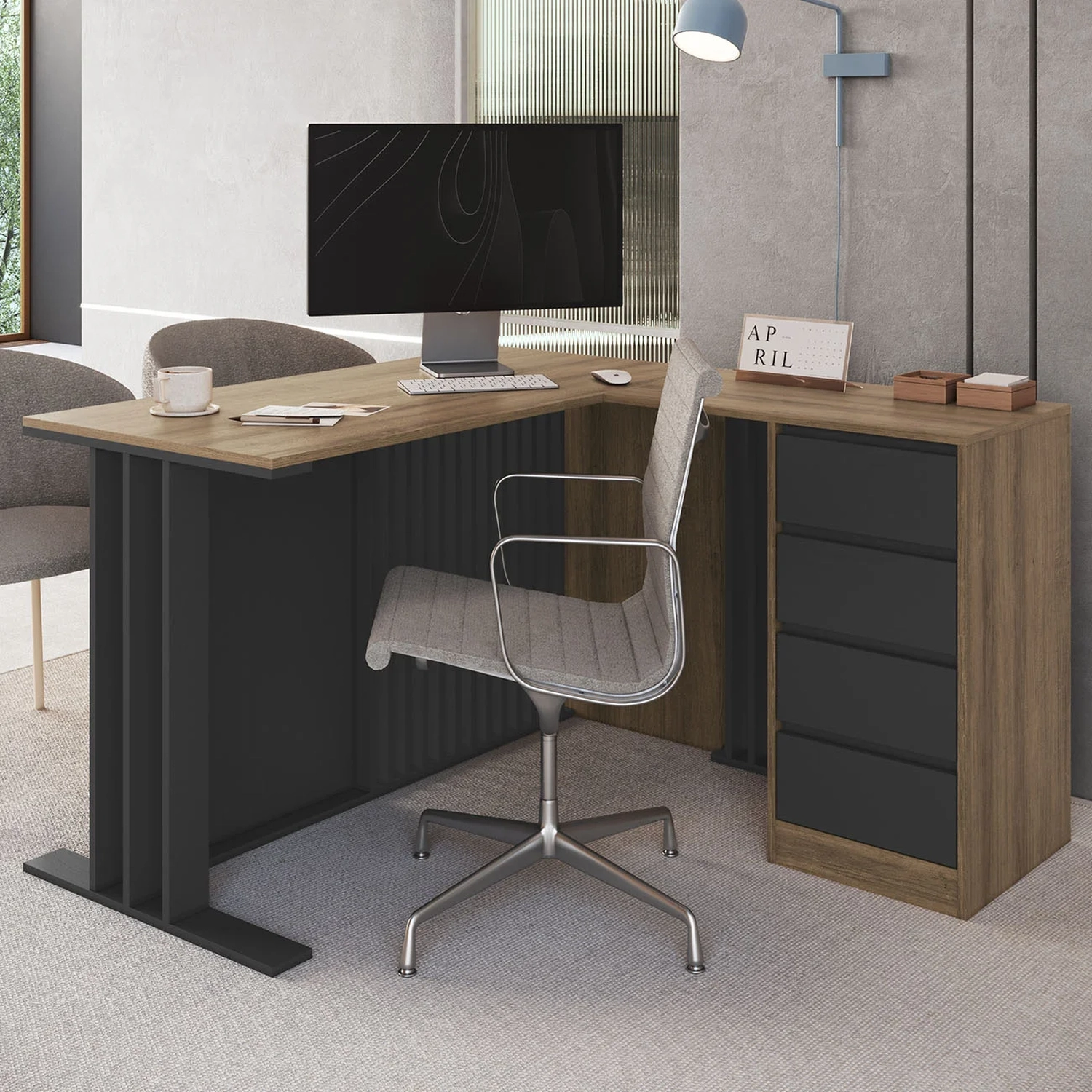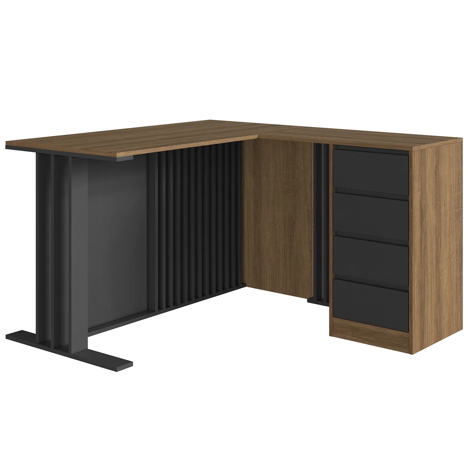 Escrivaninha em L 120cm 4 Gavetas Rael Mel/Grafite F10