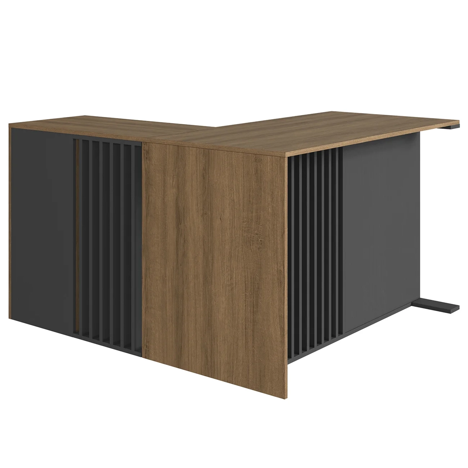 Os detalhes ripados da Mesa de Escritório é um charme à parte, deixando o visual moderno e sofisticado. Uma mesa que combina funcionalidade e estilo, tornando sua rotina mais leve e produtiva.