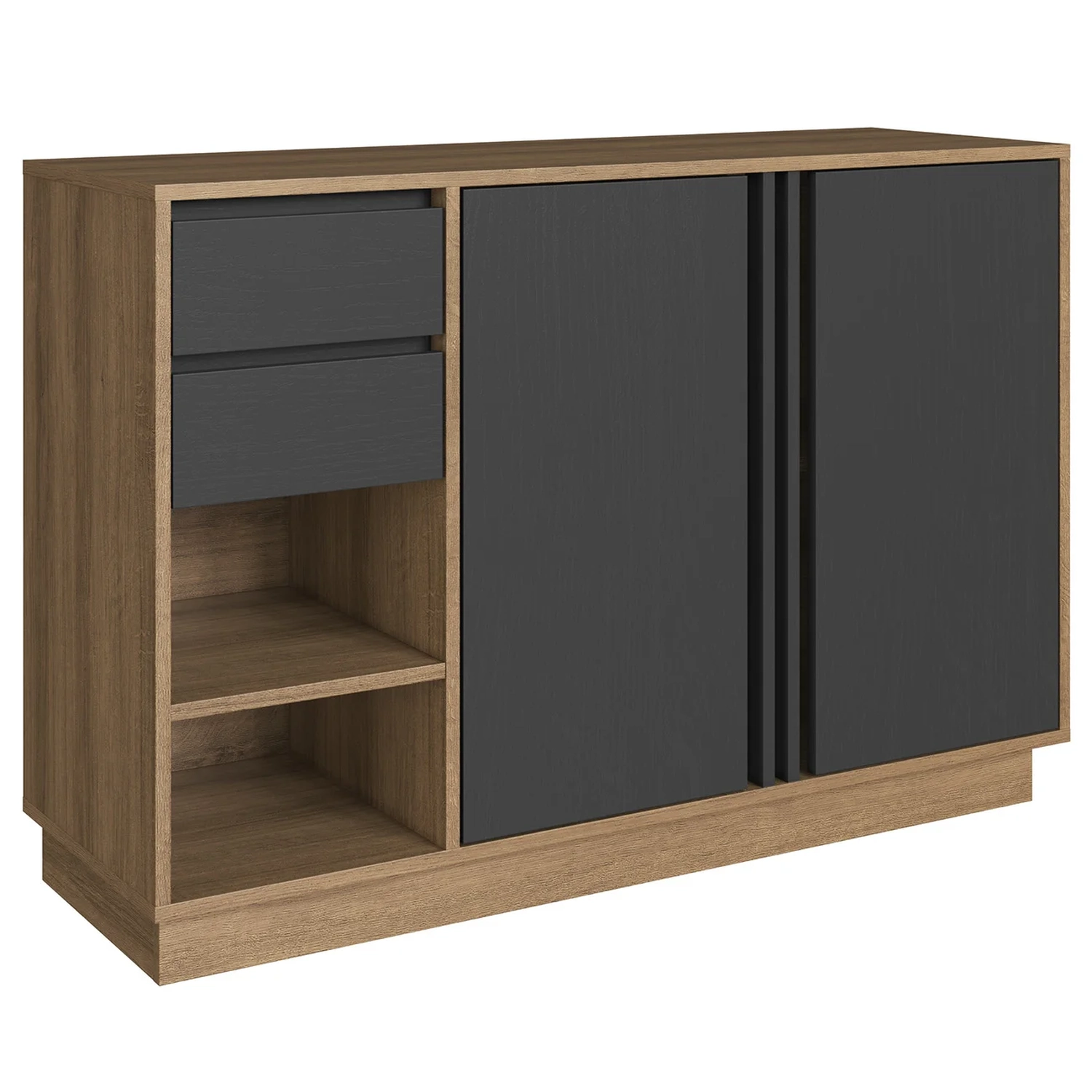 O Balcão de Escritório conta com nichos que trazem um toque moderno e refinado, além de prateleiras internas. Os móveis ainda apresentam detalhes ripados que acrescentam charme e sofisticação ao ambiente. Todas as portas e gavetas do conjunto são passantes, oferecendo maior praticidade no uso diário.