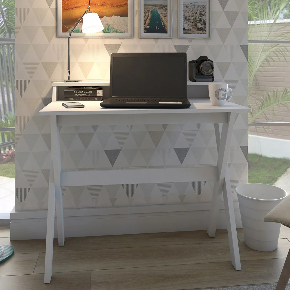 Com um design retrô que lembra o estilo vintage italiano, essa peça além de ser bastante funcional ainda vai dar um ar de elegância ao seu cantinho de trabalho ou estudos, pois seus pés cruzados e 3 nichos junto à mesa de trabalho garantem charme e aconchego ao ambiente aliados ao Branco da cor.
