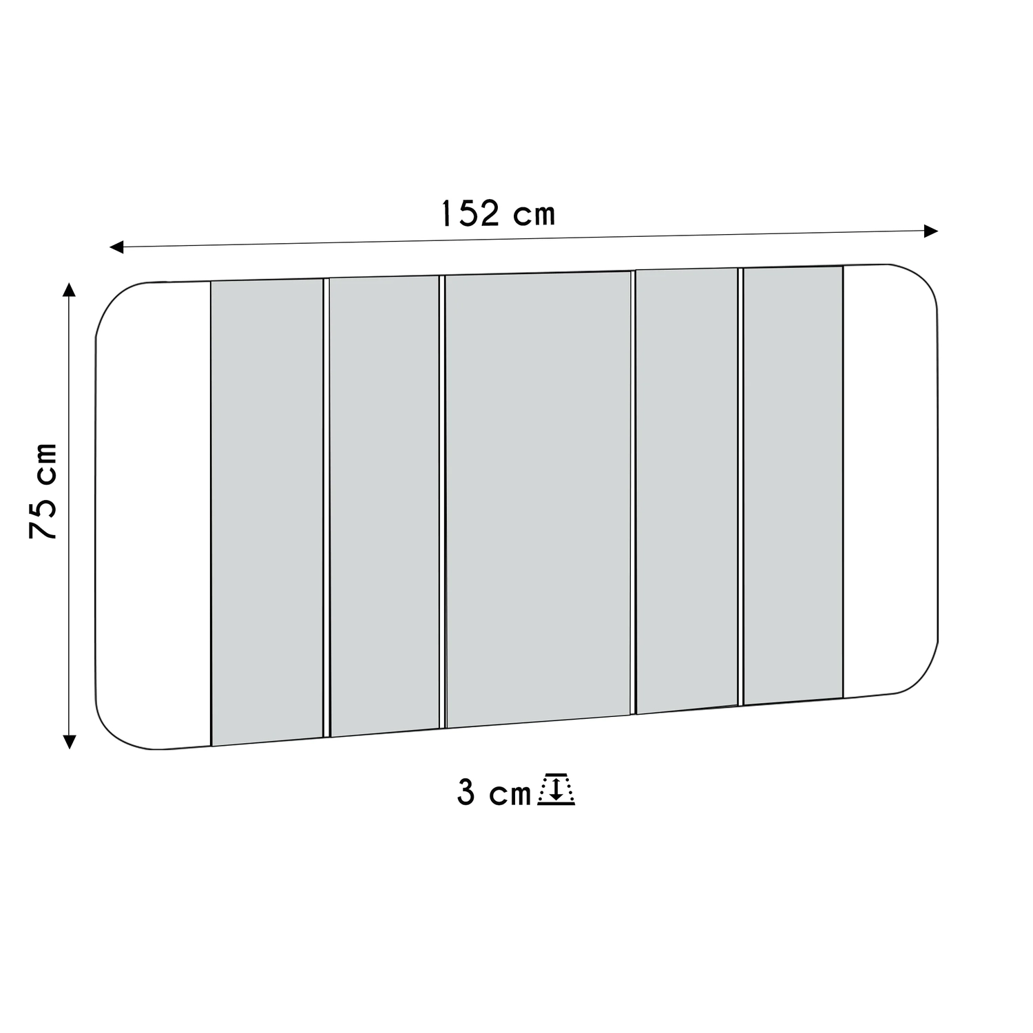 - Laterais curvas e frisos entre os espelhos.