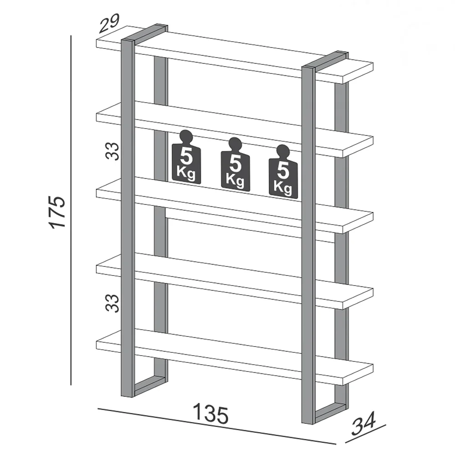 Peso Suportado: 5 Kg por prateleira.