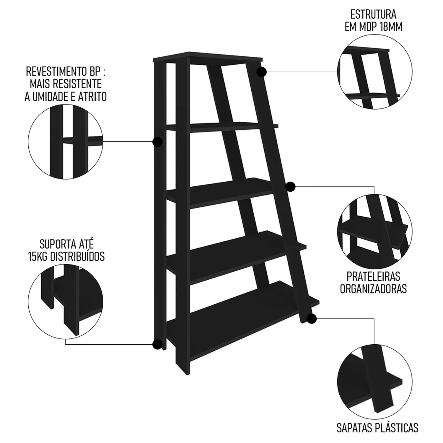 A Estante Escada Multiuso Decorativa 5 Prateleiras Stela Preto, da Mpozenato, é perfeita para adicionar um toque de estilo moderno à sua casa.