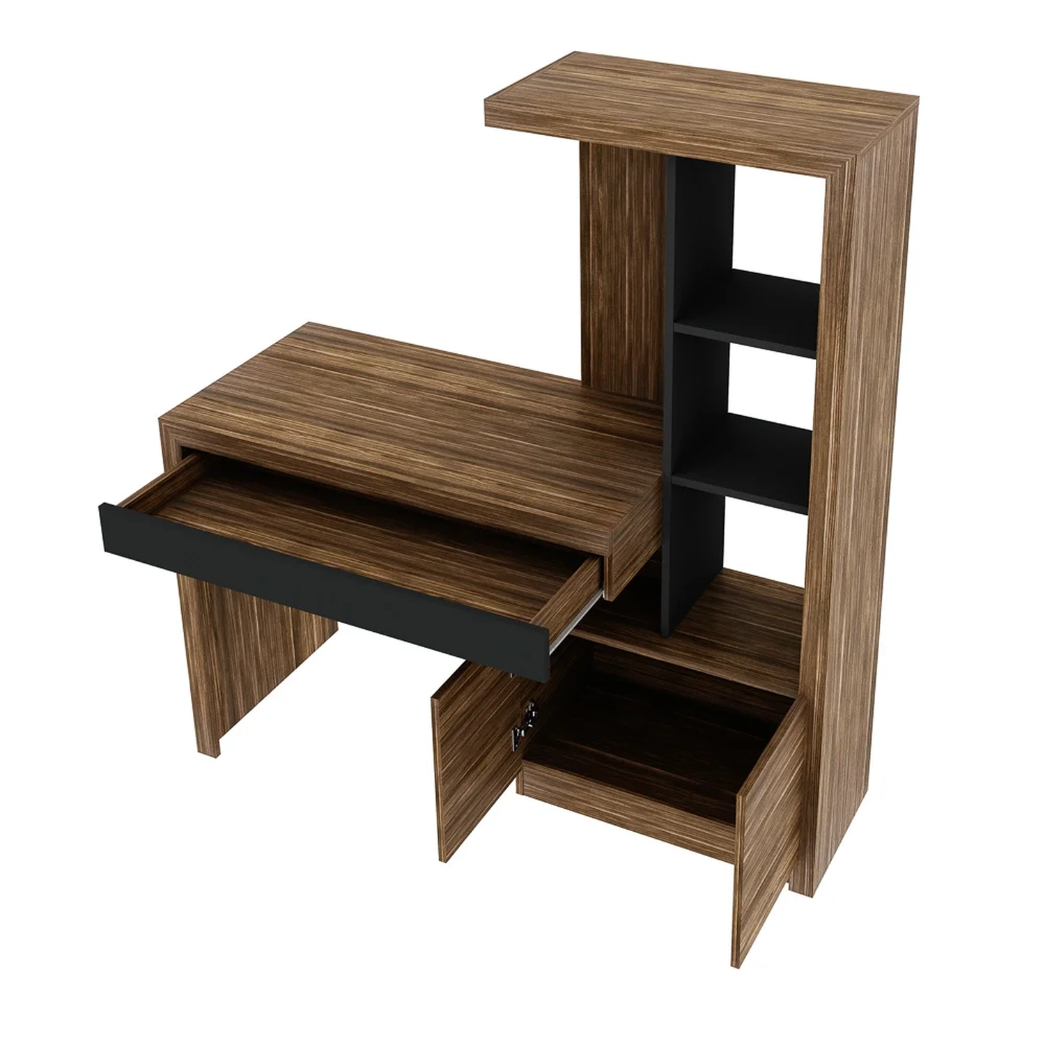 Estante Escrivaninha 2 Portas 1 Gaveta ME4143 Nogal/Preto - Tecno Mobili 82660