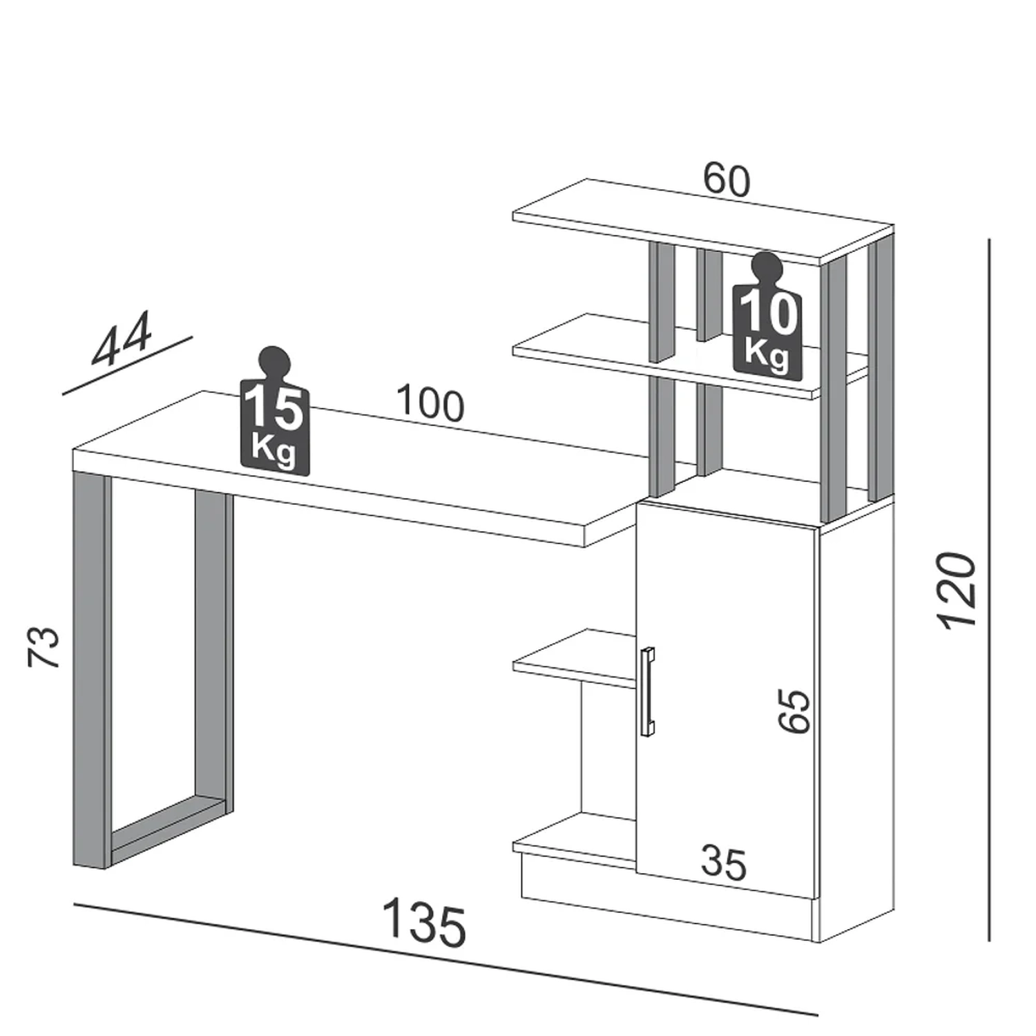 Largura: 135 cm.