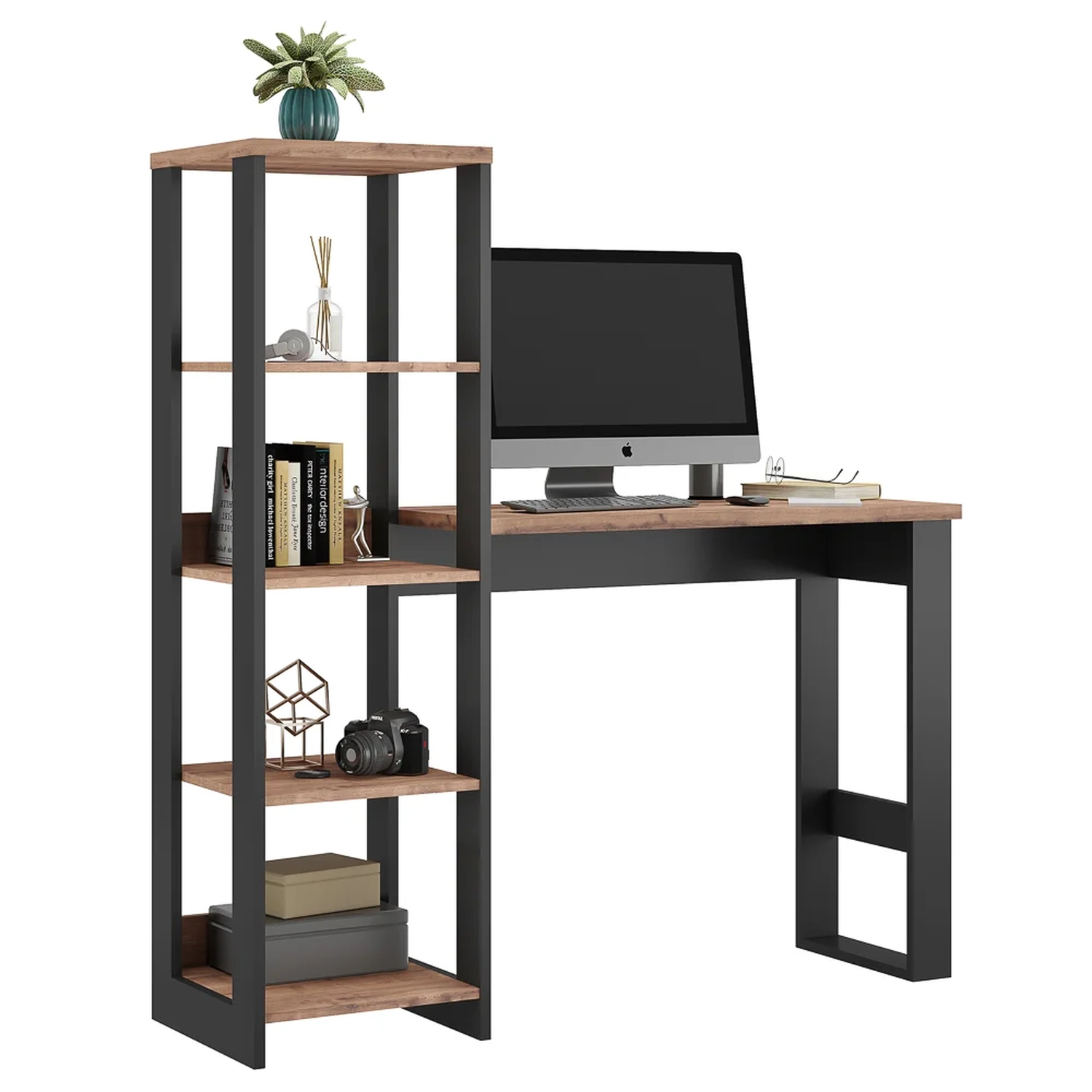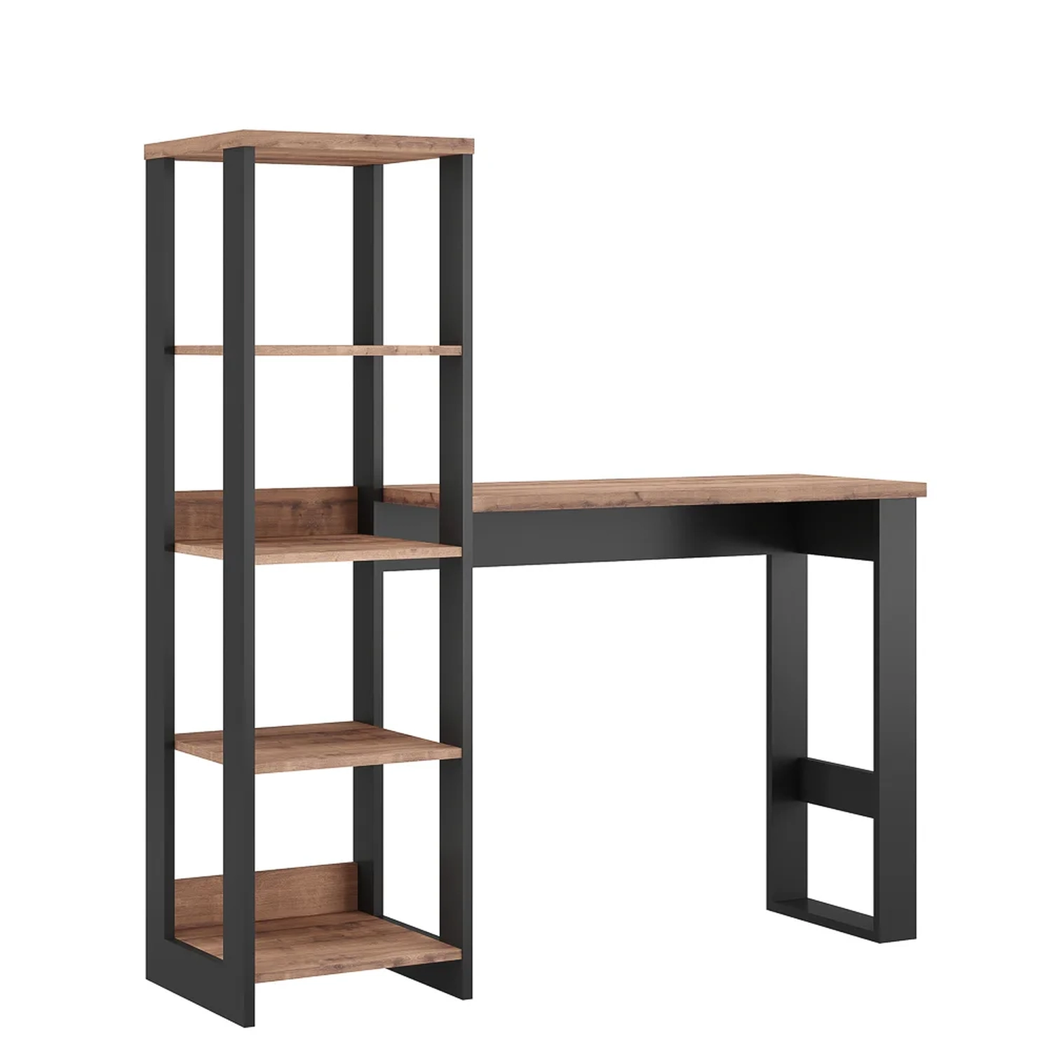 Se você gosta do objetivo e funcional, essa estante escrivaninha é a personificação desse conceito! Ela possui estrutura em MDP e MDF de qualidade, com acabamento em pintura BP fosco que além de garantir durabilidade e resistência o produto, ainda contribui para um design moderno no estilo industrial! Inclusive, conta com 3 prateleiras formando nichos para colocar seus objetos e a mesa escrivaninha para desempenhar suas atividades! Imperdível né?