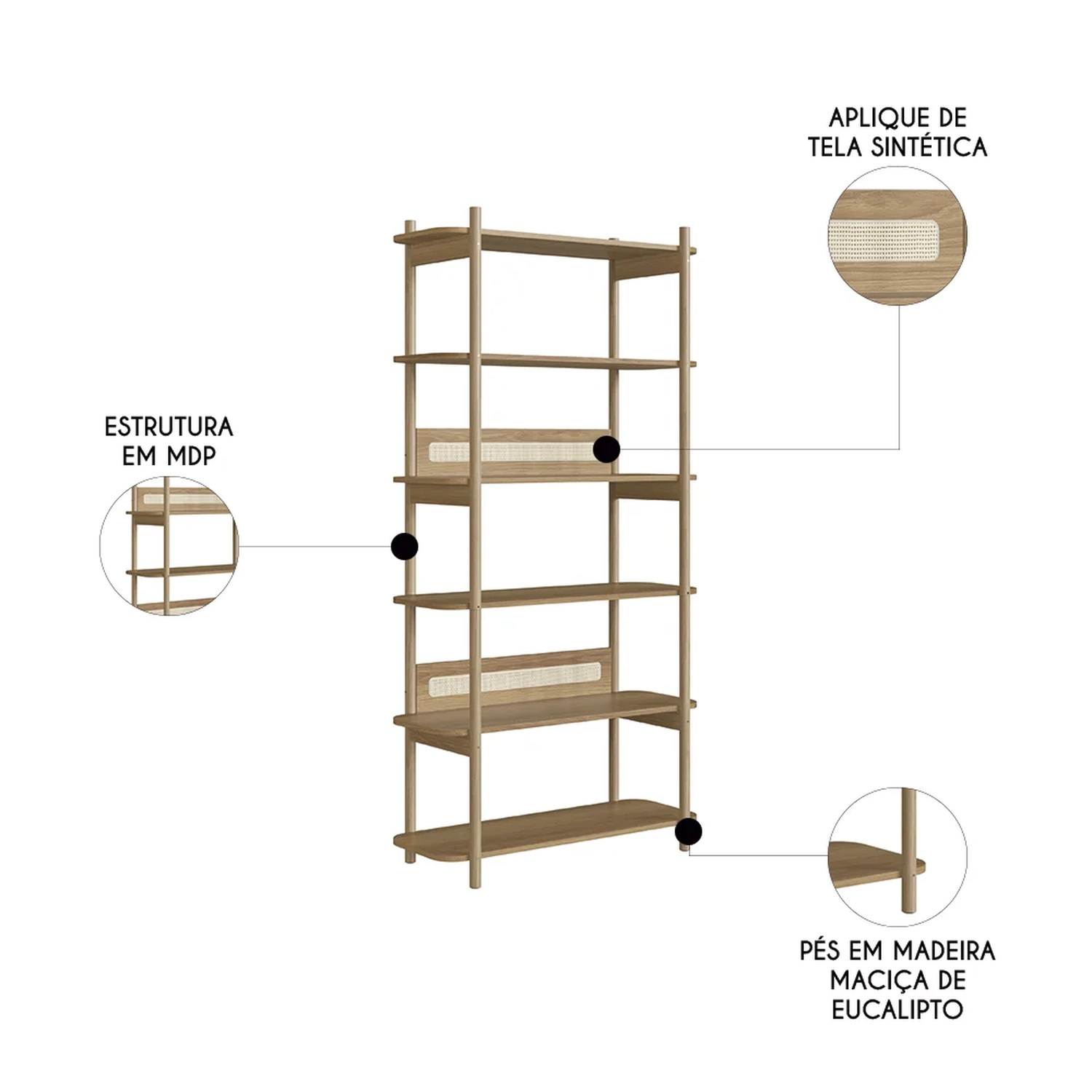 Fabricada com MDP de 15mm resistente, oferece durabilidade. O Livreiro Multiuso conta com pés de madeira maciça conhecida pela sua robustez, e incluem sapatas emborrachadas para proteger o piso de arranhões. Além disso, o acabamento BP não só realça a beleza natural do móvel, mas também oferece uma camada adicional de proteção contra o desgaste diário. Este Livreiro Estante não é apenas um item prático, mas também um elemento que adiciona um toque de elegância e modernidade ao espaço.