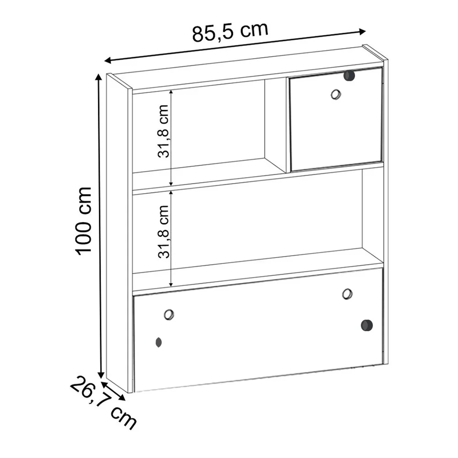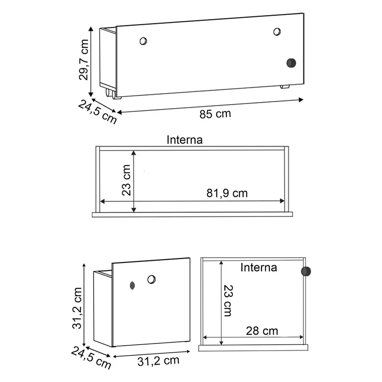 Gaveta Menor: 31,2 x 31,2 x 24,5 cm.
