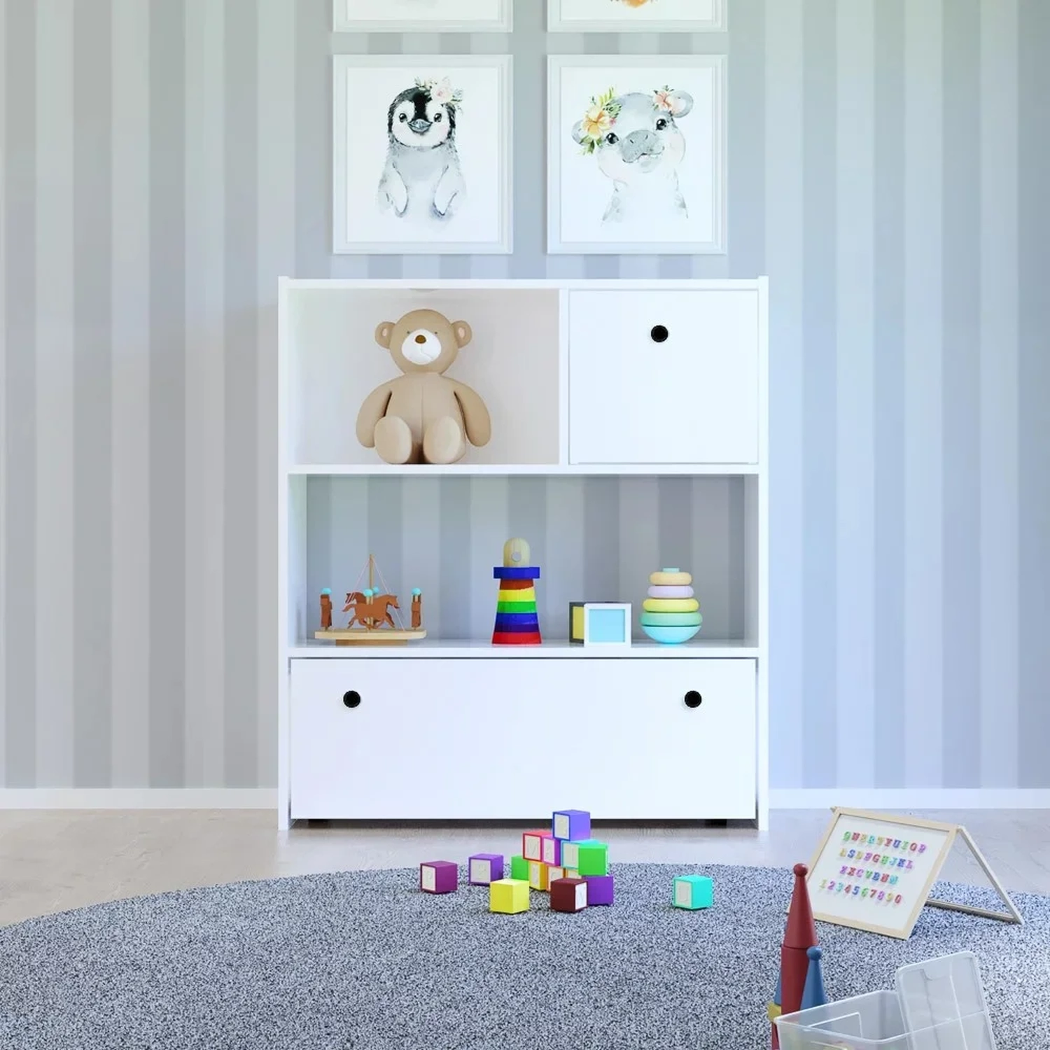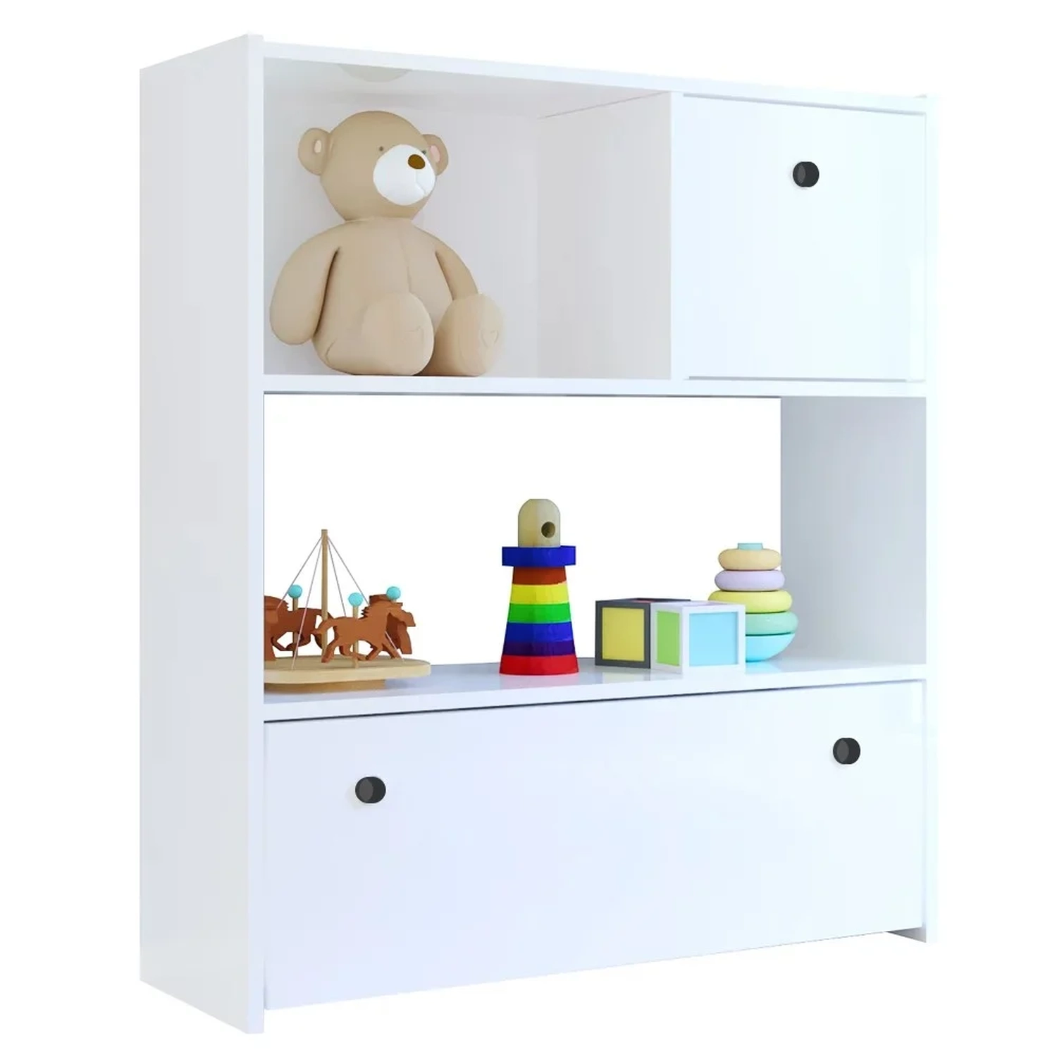 Conteúdo da Embalagem: 1 Estante Infantil, 2 Gavetas.